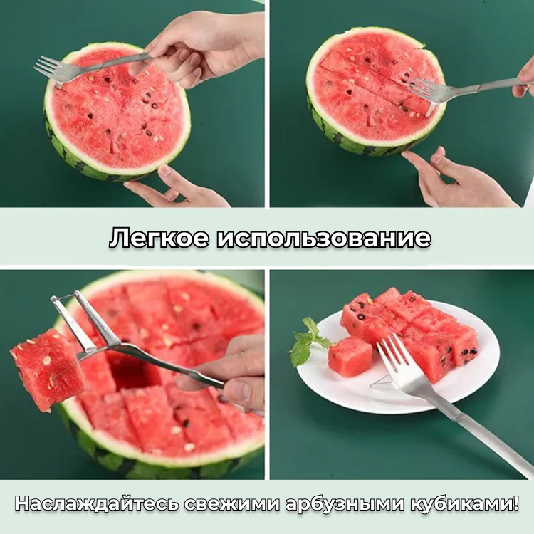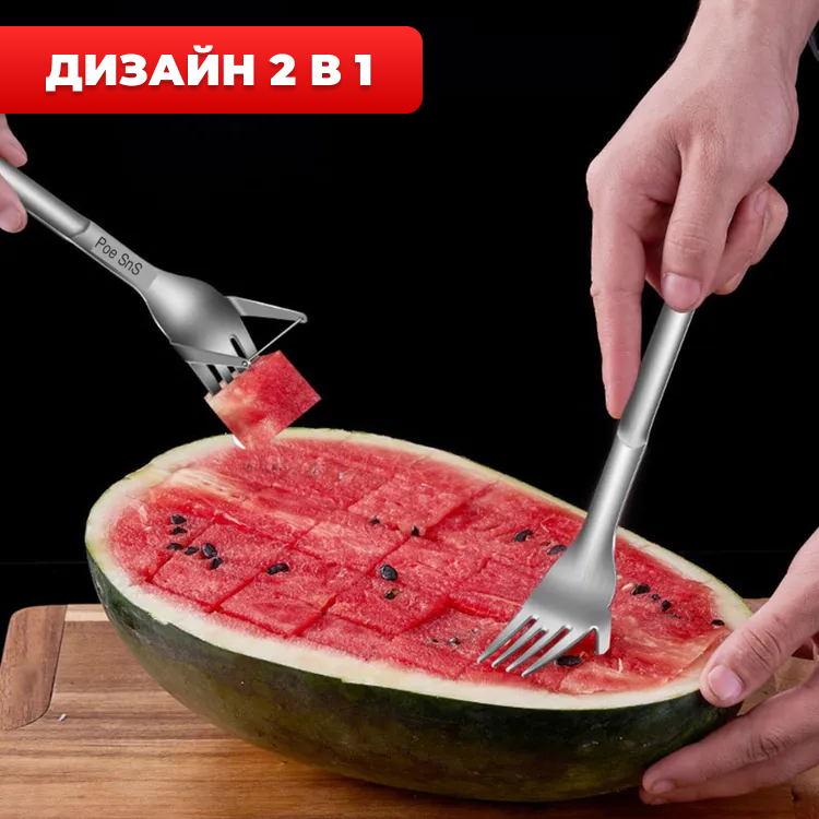 Портативная Арбузорезка 2 в 1, вилка-нож из нержавеющей стали информация: