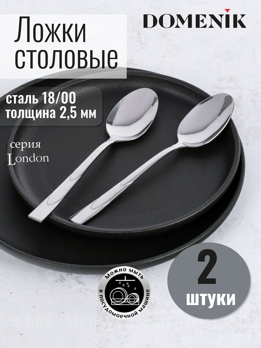 Ложка столовая Domenik LONDON 2 штуки, универсальная, нержавеющая сталь 296 ₽