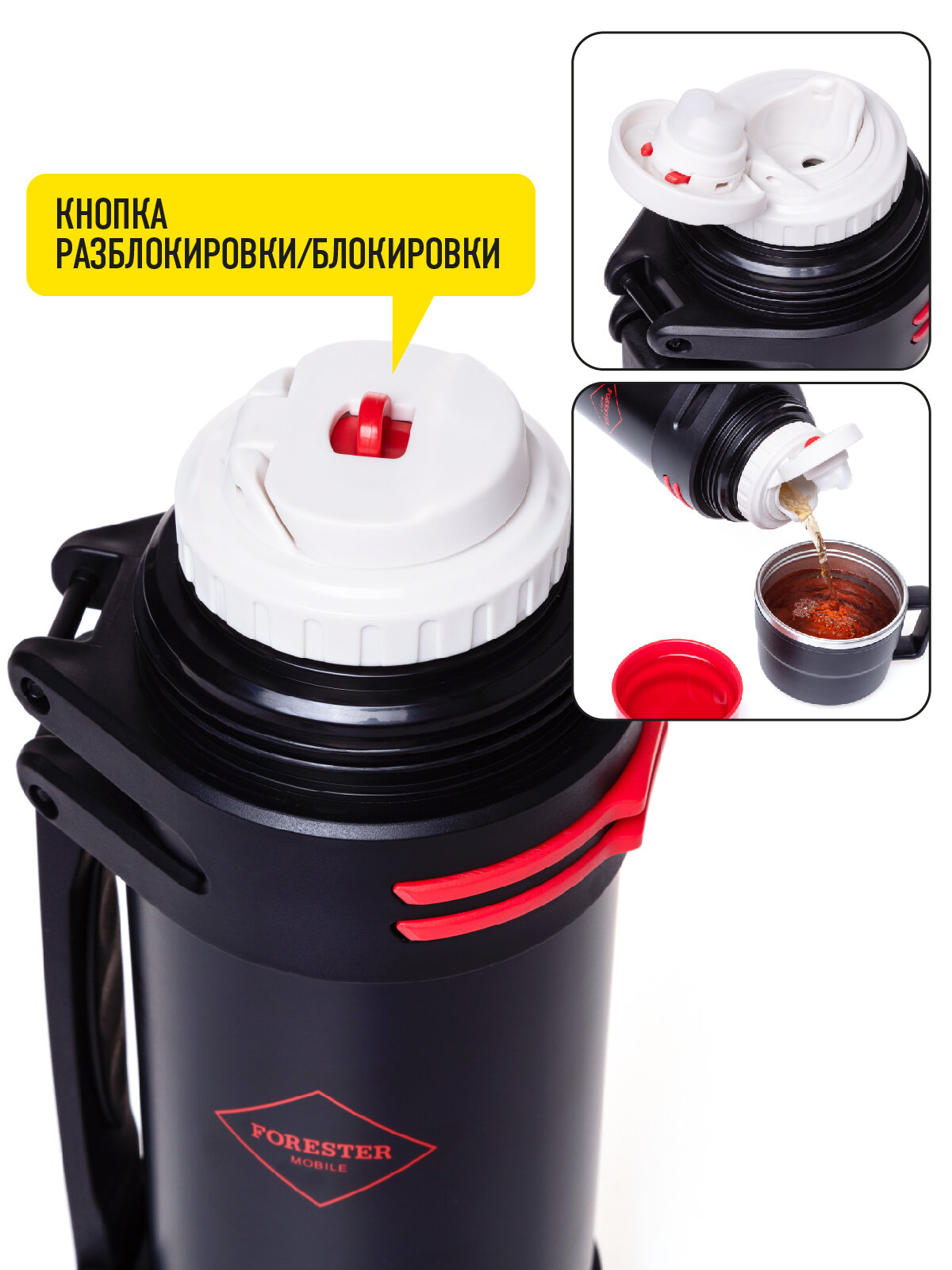 Отзывы на Термос вакуумный Forester Mobile с 2 кружками и мембраной для заварки, 1,2 л