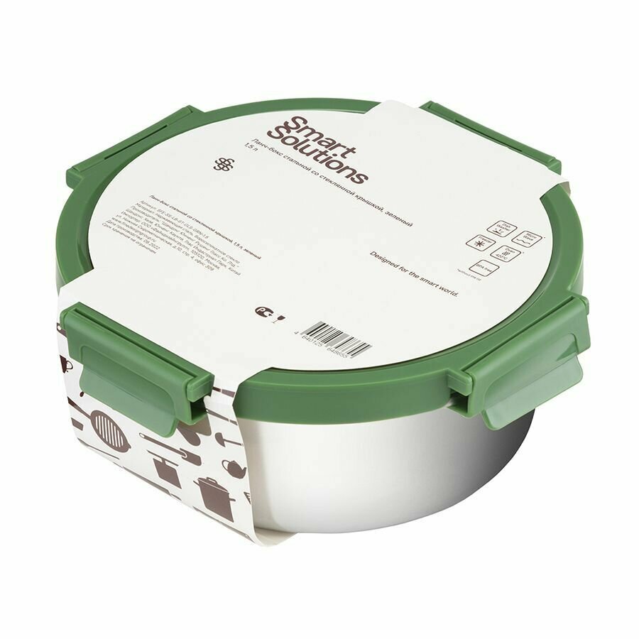 Ланч-бокс стальной со стеклянной крышкой Smart Solutions SFE-SS-LB-ST-GLS-GRN-1.5, 1,5 л, зеленый 1 225 ₽