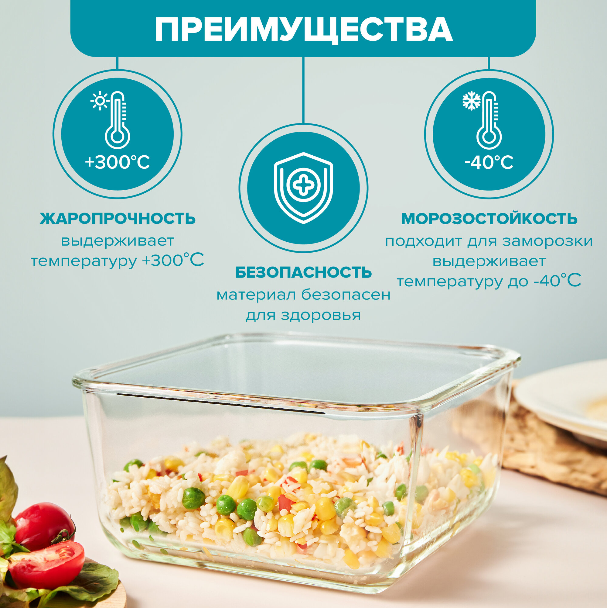 Контейнер для еды стеклянный квадратный 2200 мл с крышкой Good Sale информация: