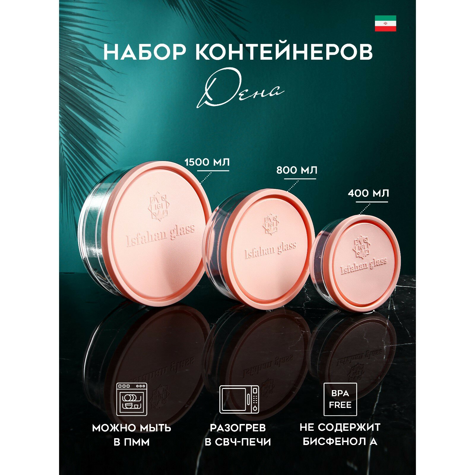 Набор контейнеров Дена, 1500 мл, 800 мл, 400 мл, стекло, Иран Isfahan Glass 9621781 .