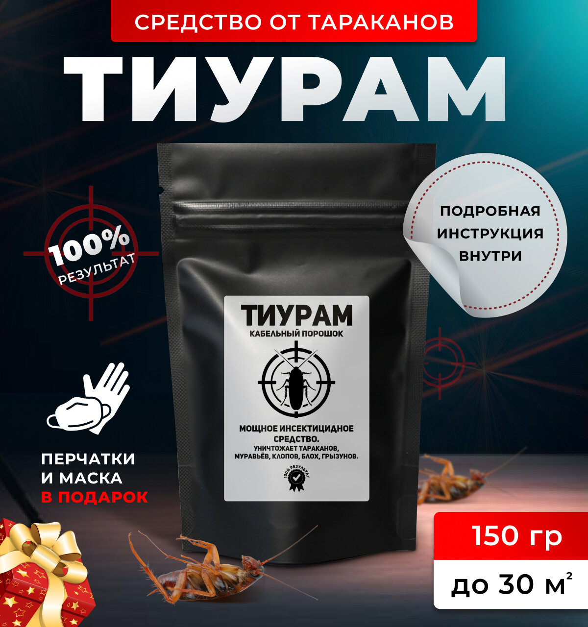 Тиурам Кабельный порошок (TMTD) инсектицид от тараканов 150 гр информация: