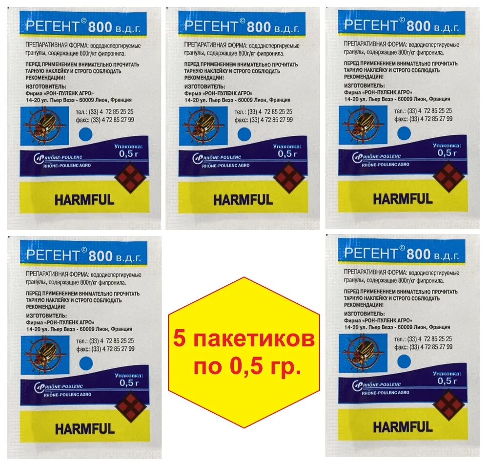Регент 800 5шт. по 0.5гр - инсектицидное средство от насекомых (тараканов, колорадского жука, медведки, муравьев) информация: