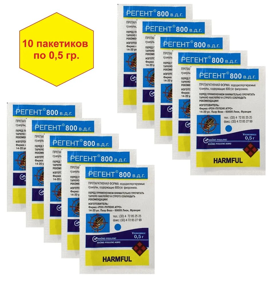 10 цен на Регент 800 10шт. по 0.5г - инсектицидное средство от насекомых (тараканов, колорадского жука, медведки, муравьев)