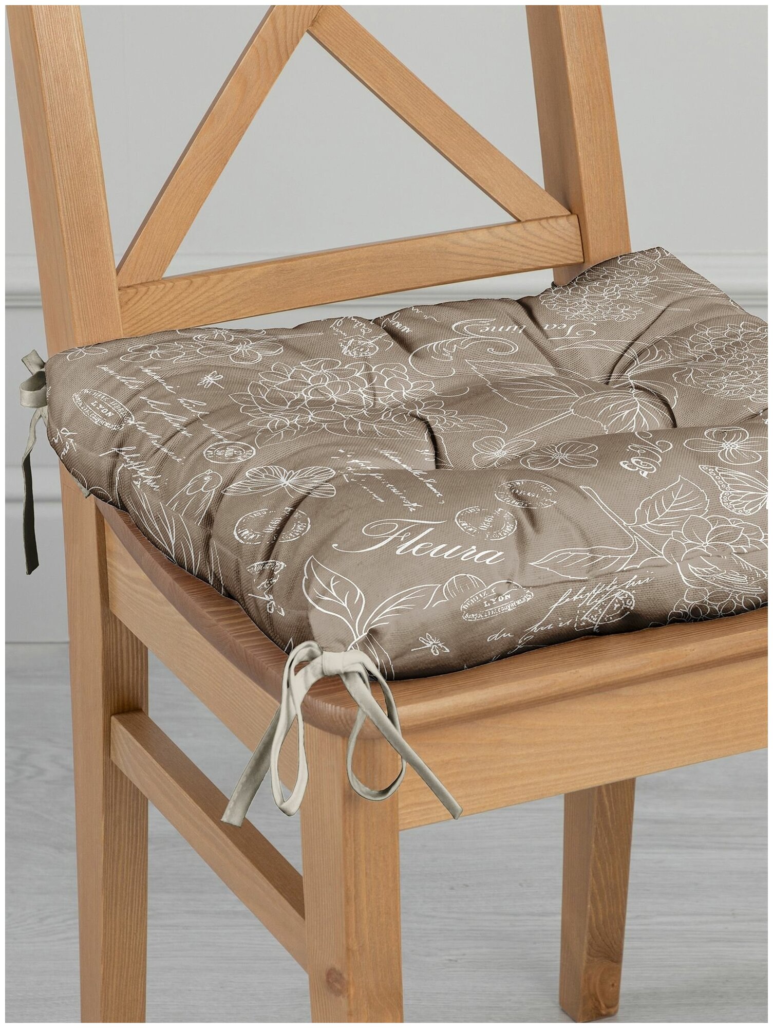 Фигурная декоративная трапециевидная подушка на стул с завязками ГрандСтиль