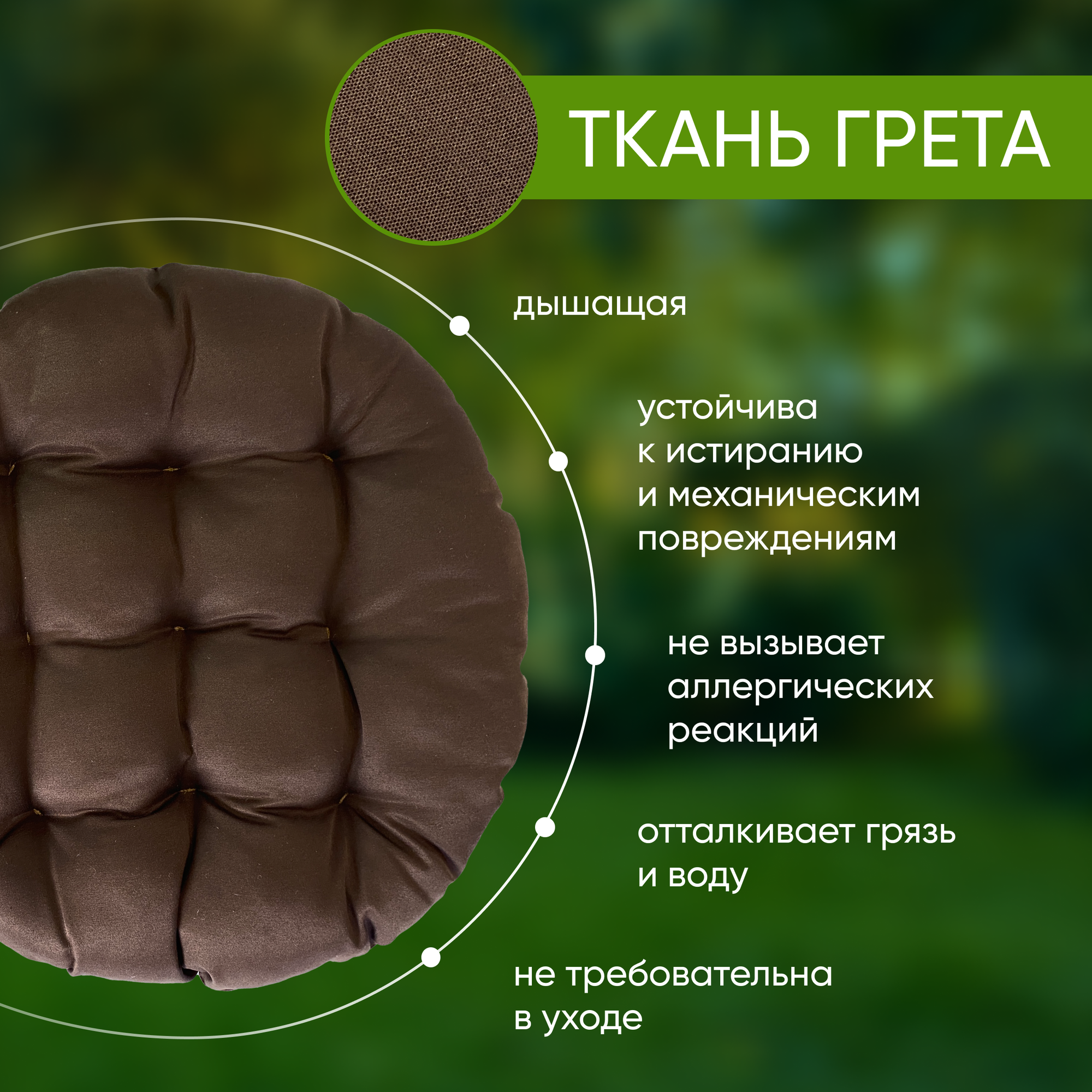Отзывы на Подушка на мебель садовую круглая 60х60см, подушка на качели, цвет коричневый