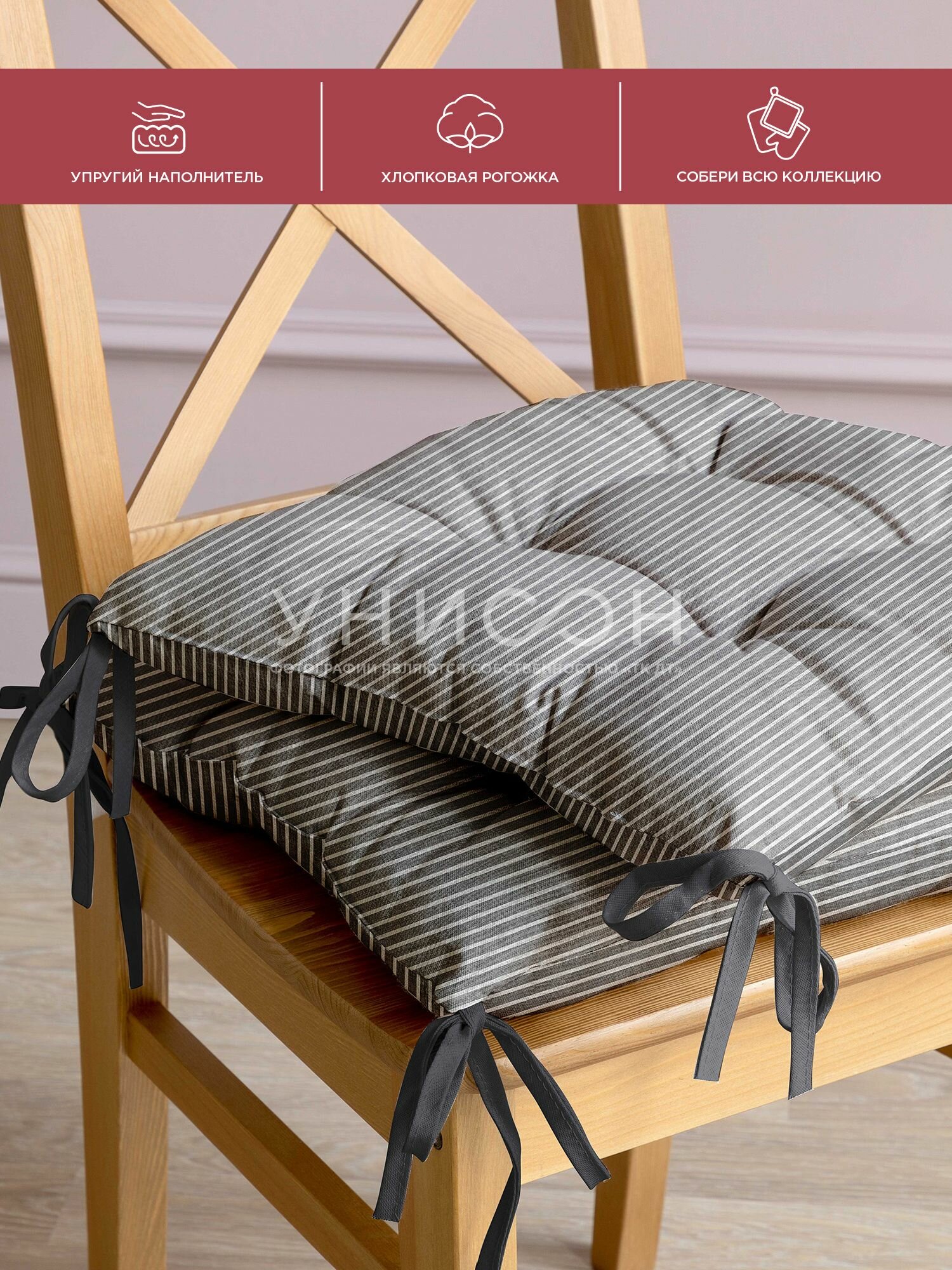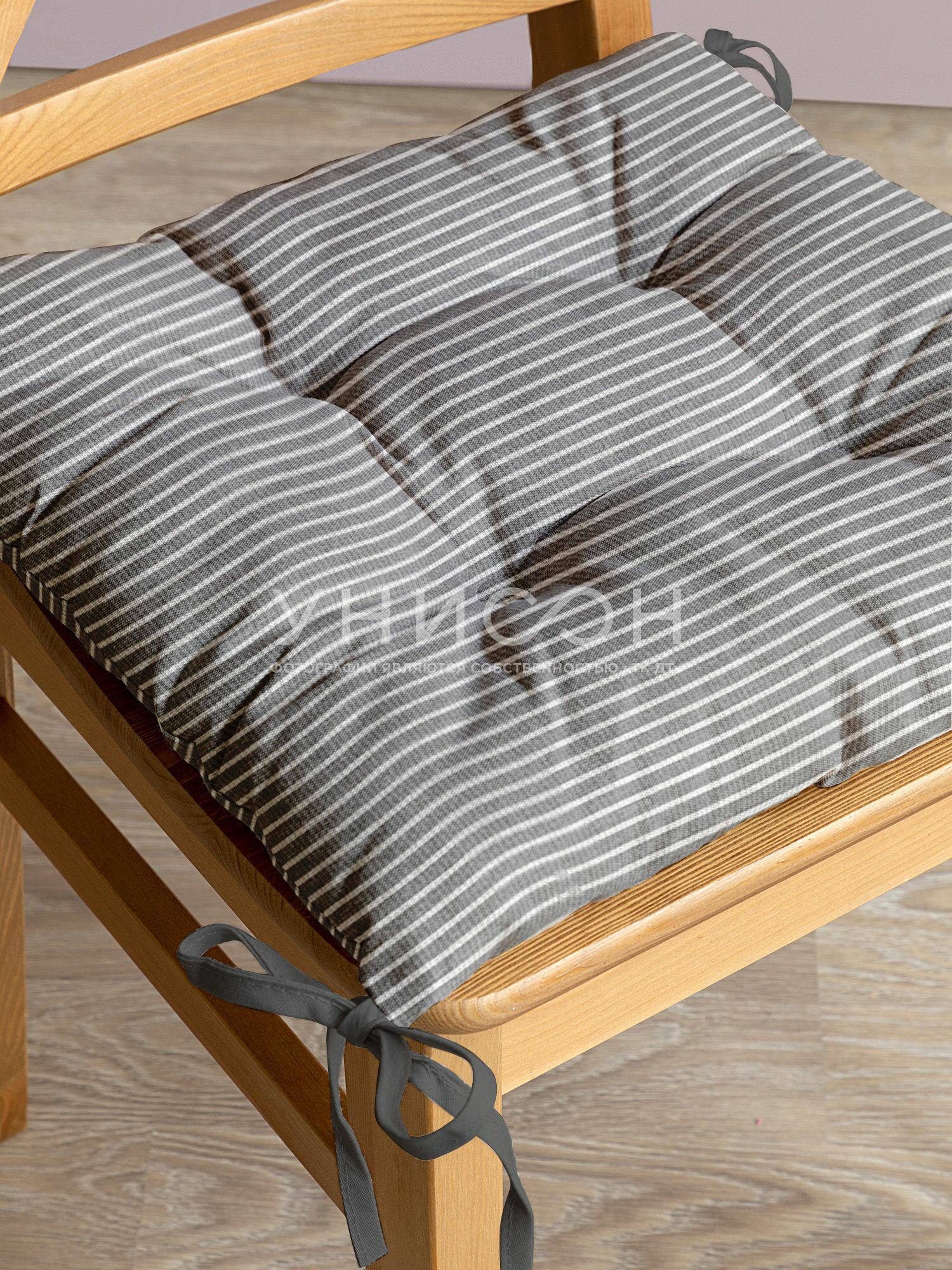 Подушка на стул квадратная 40х40 с завязками / "Унисон" рис 30004-10 Basic графит / плоская 496 ₽