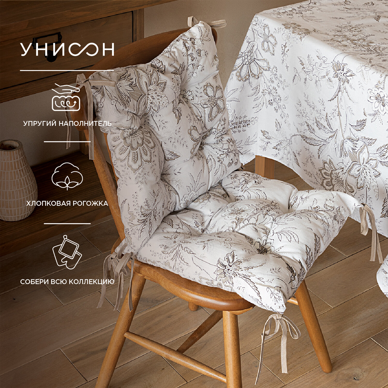 Комплект подушек на стул с тафтингом квадратных 40х40 (2 шт.) "Унисон" рис 33181-1 Ирландское кружево информация: