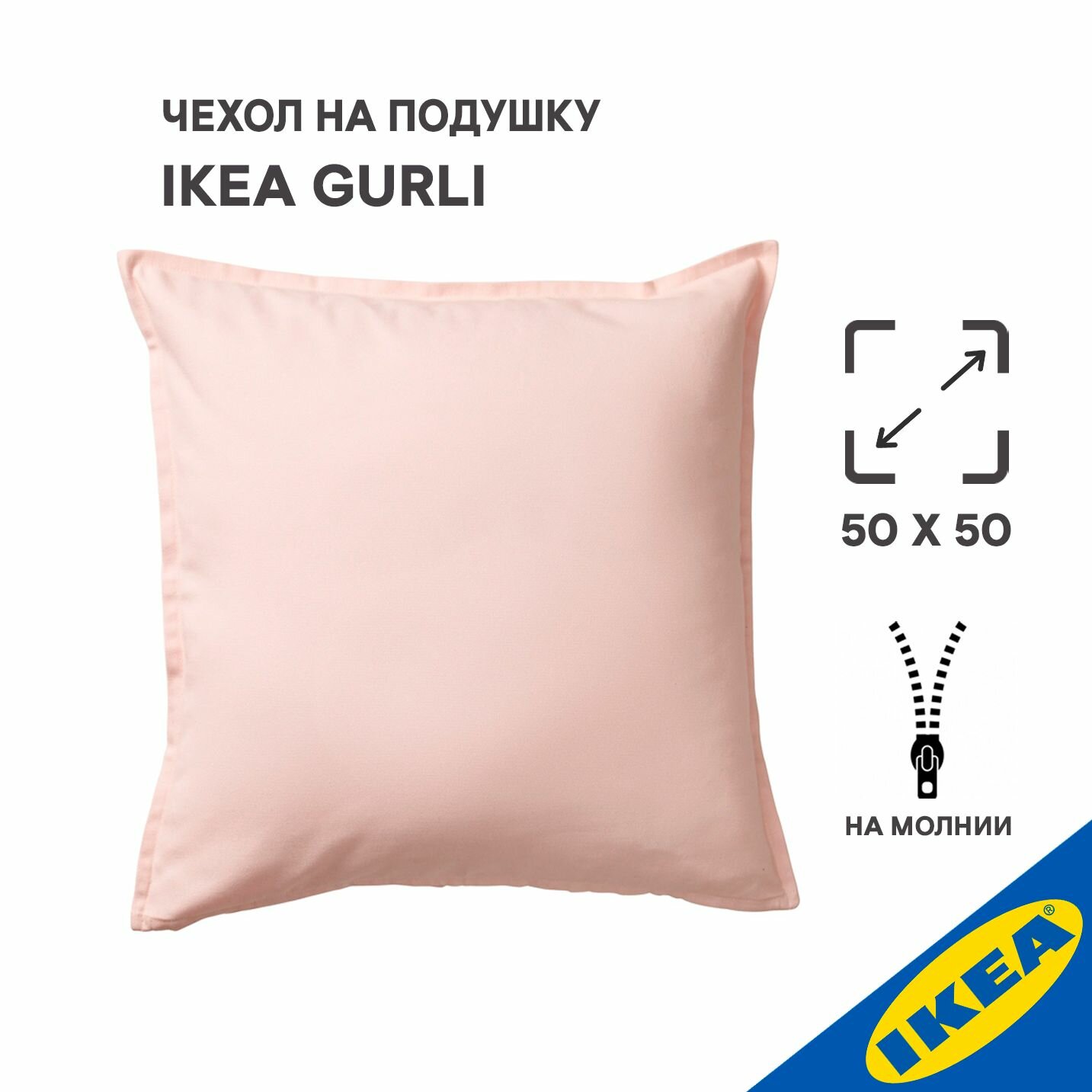 Чехол на подушку 50x50 см IKEA GURLI гурли, светло-розовый информация: