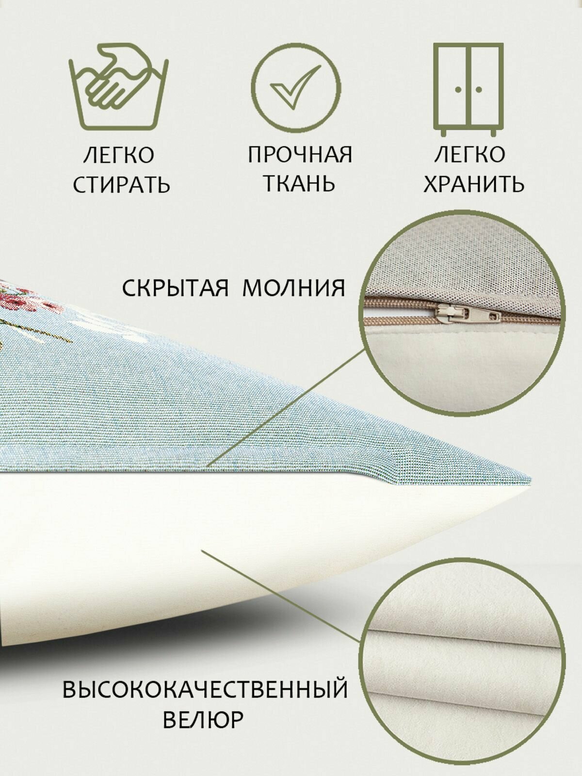 Наволочка гобелен Le Gobelin Принцесса цветов бирюзовый фон 45х45 см информация: