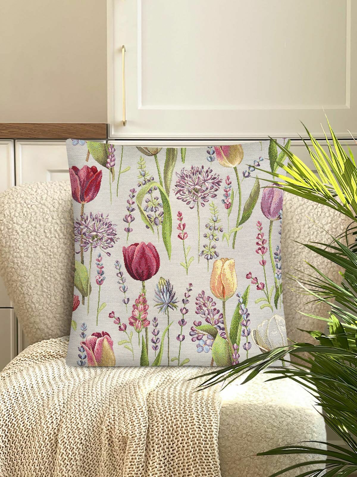Наволочка гобелен Le Gobelin Тюльпаны моей любимой светлый фон 45х45 см