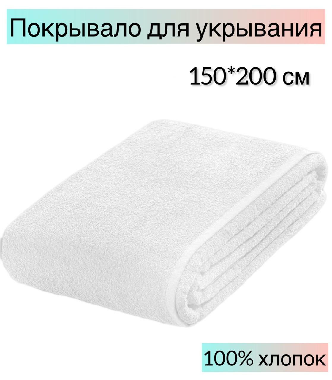 Махровая простынь для укрывания, 150x200 см, летнее одеяло, большое полотенце, цвет: белый информация: