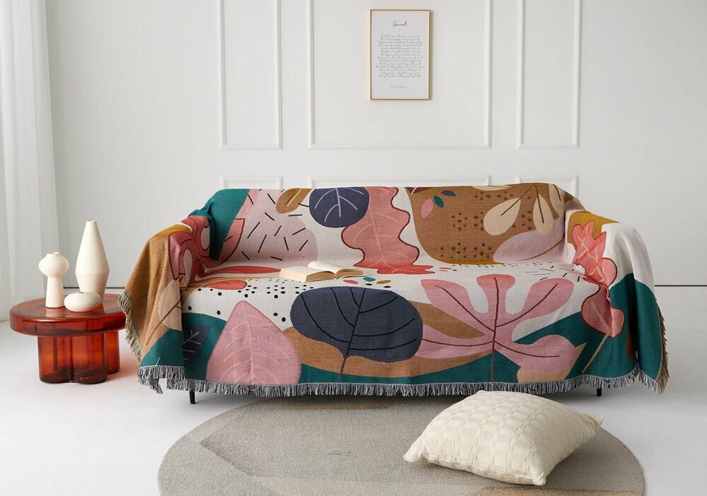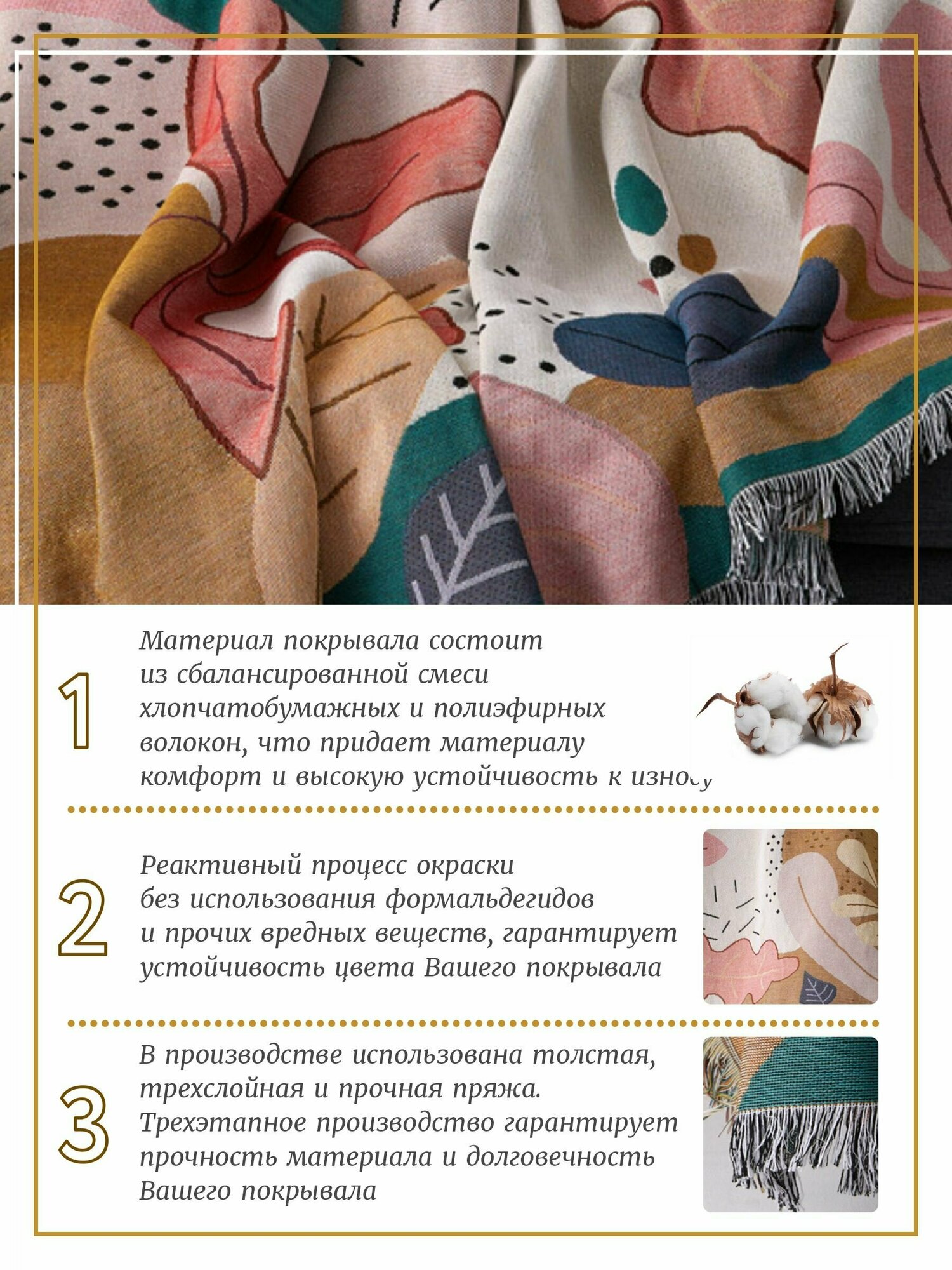 Покрывало Sundelica "Листья" 160х220 см, двухстороннее, хлопок/полиэстер, отделка бахромой информация: