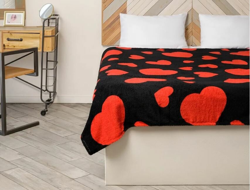 10 цен на Плед мягкий плюшевый Черный Красные Сердечки 180х200 см