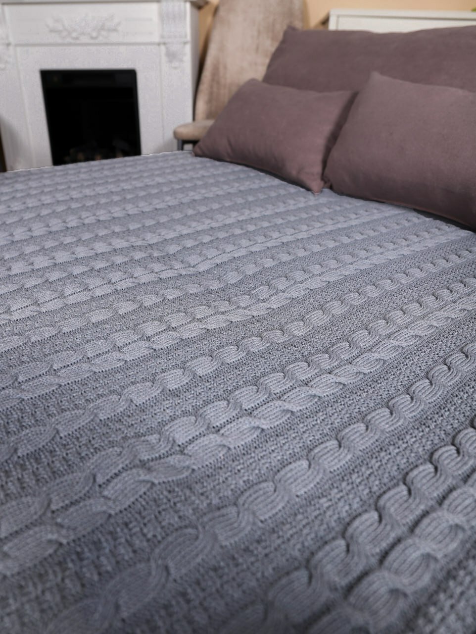 Отзывы на Плед 220х240, вязаный, Warm Whiff, серый, хлопок 100%, покрывало на кровать, на диван, на кресло, большой, тонкий, в подарочной коробке