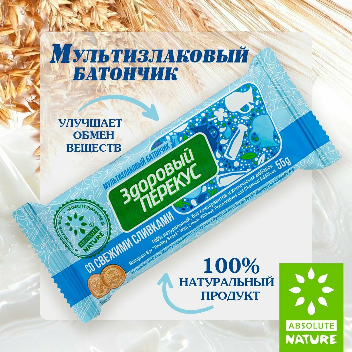 Злаковый батончик Absolute NATURE Здоровый перекус без сахара со сливками