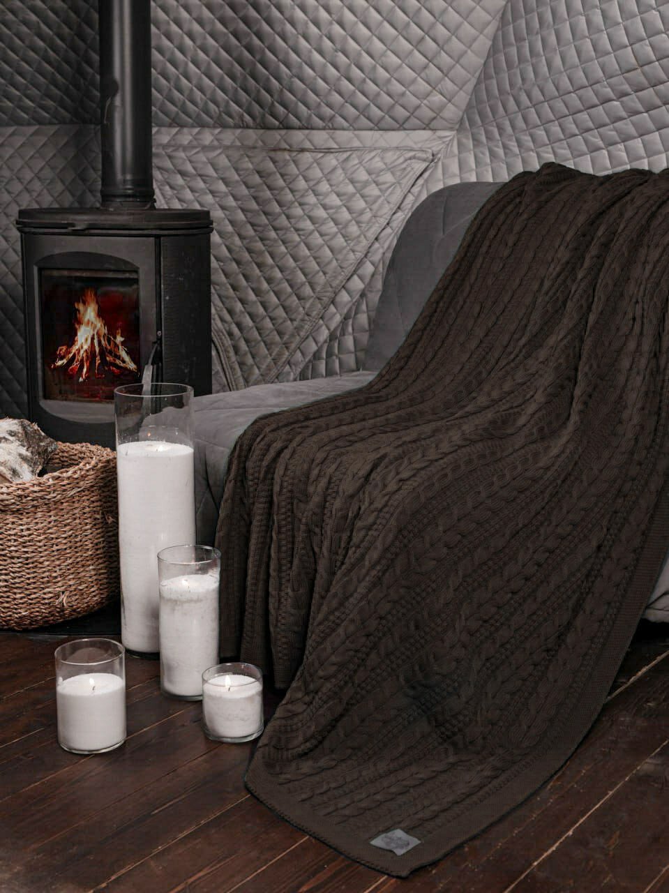 Отзывы на Плед 180х220, вязаный, Warm Whiff, коричневый, хлопок, покрывало на кровать, на диван, на кресло, в подарочной коробке