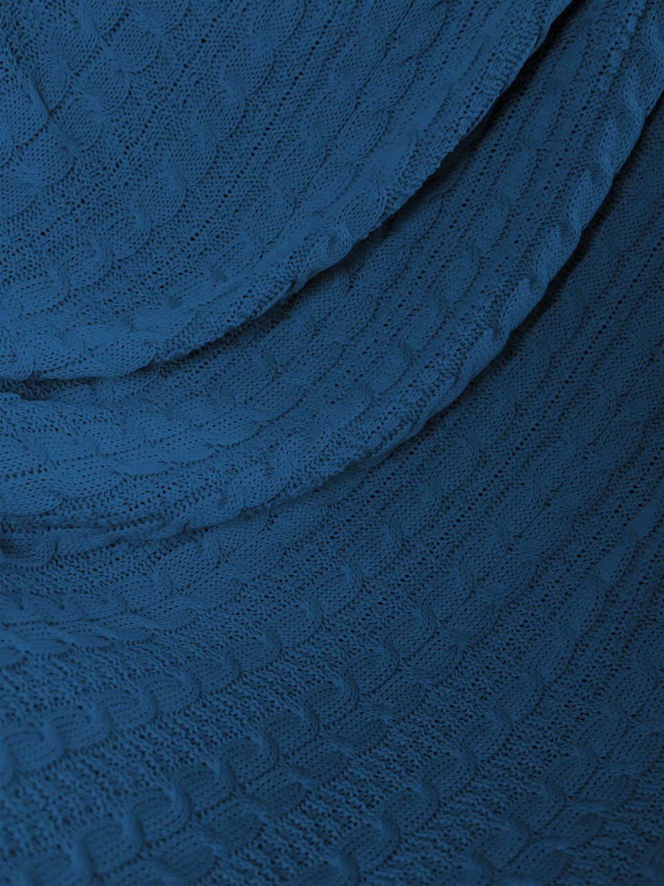 Плед 180х220, вязаный, Warm Whiff, темно-синий, хлопок, покрывало на кровать, на диван, на кресло, в подарочной коробке