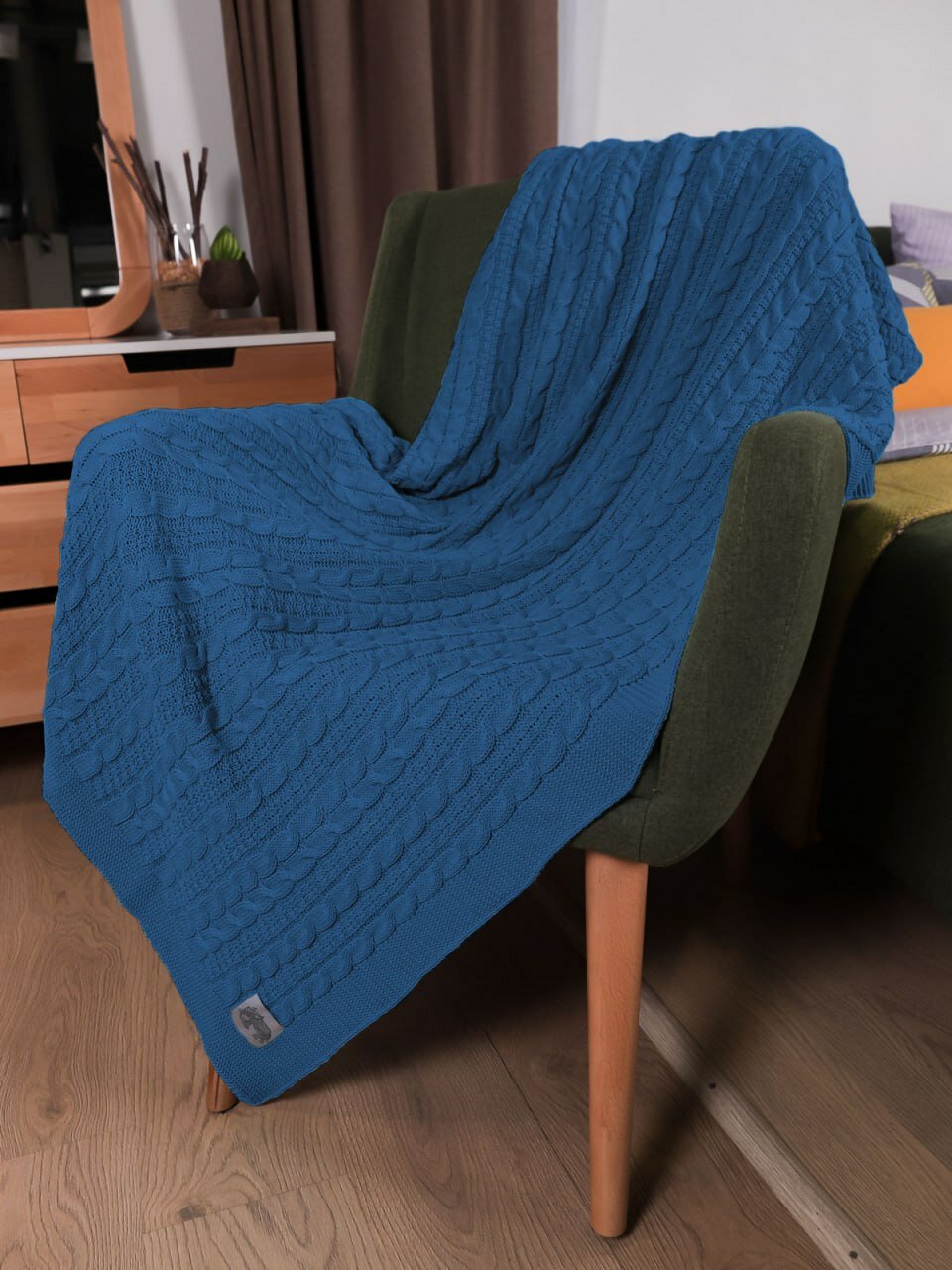 Отзывы на Плед 220х240, вязаный, Warm Whiff, светло-джинсовый, хлопок 100%, покрывало на кровать, на диван, на кресло, большой, тонкий, в подарочной коробке