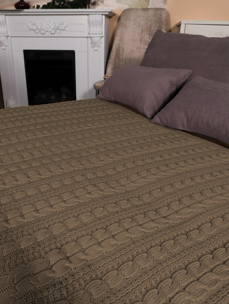 Отзывы на Плед 220х240, вязаный, Warm Whiff, темно-бежевый, хлопок 100%, покрывало на кровать, на диван, на кресло, большой, тонкий, в подарочной коробке