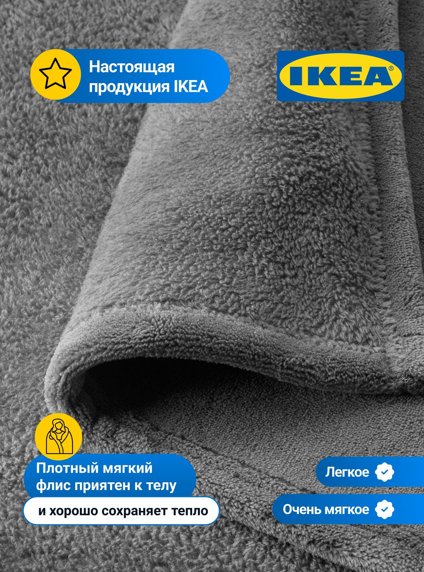 Покрывало на кровать IKEA траттвива, серый 150x250 см, 103.840.45. Плед флисовый Trattviva 2 350 ₽