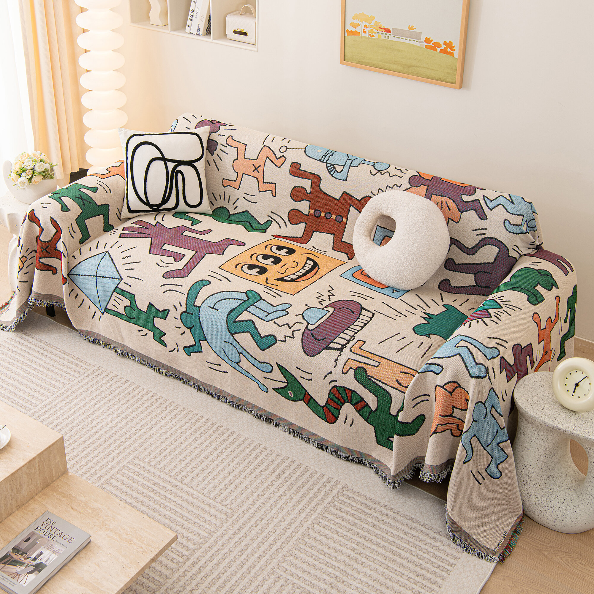 Покрывало для пикника, покрывало на диван,плед на диван,плед для пикника, плед хлопковый / полиэстер, современное покрывало для дивана в стиле INS с граффити, размер 90/180 информация: