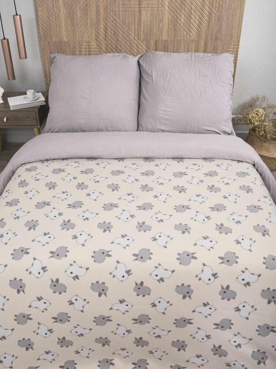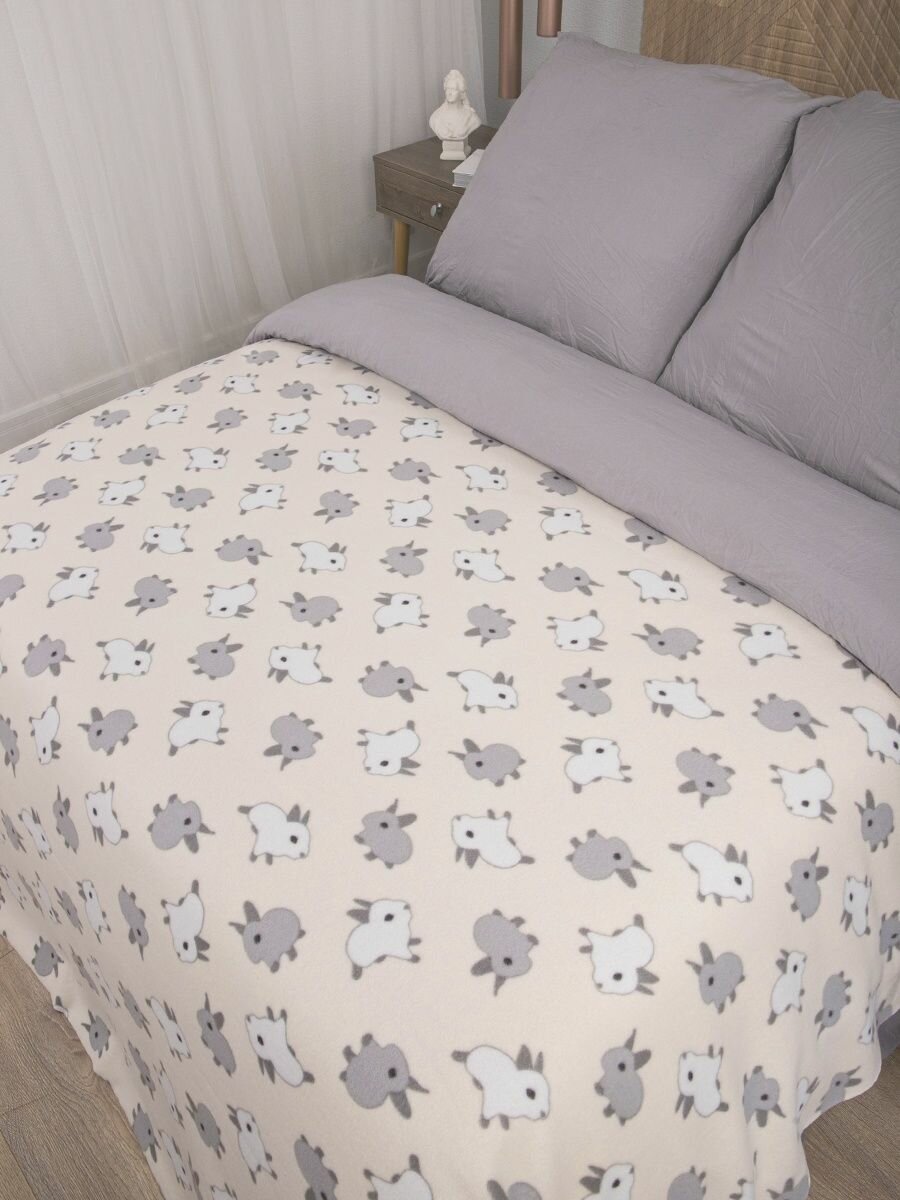 10 цен на Плед флисовый 150х200 на кровать для пикника детский, "Кролики " бежевый