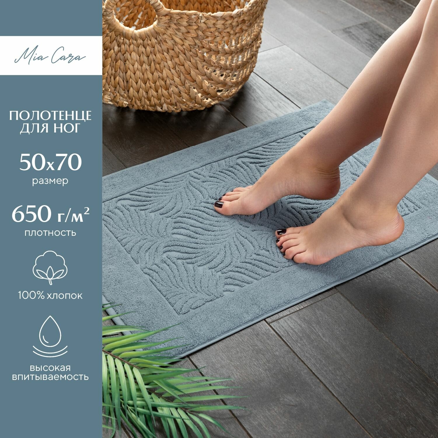 Отзывы на Полотенце махровое для ног 50х70 (коврик) "Mia Cara" Листья серо-голубой
