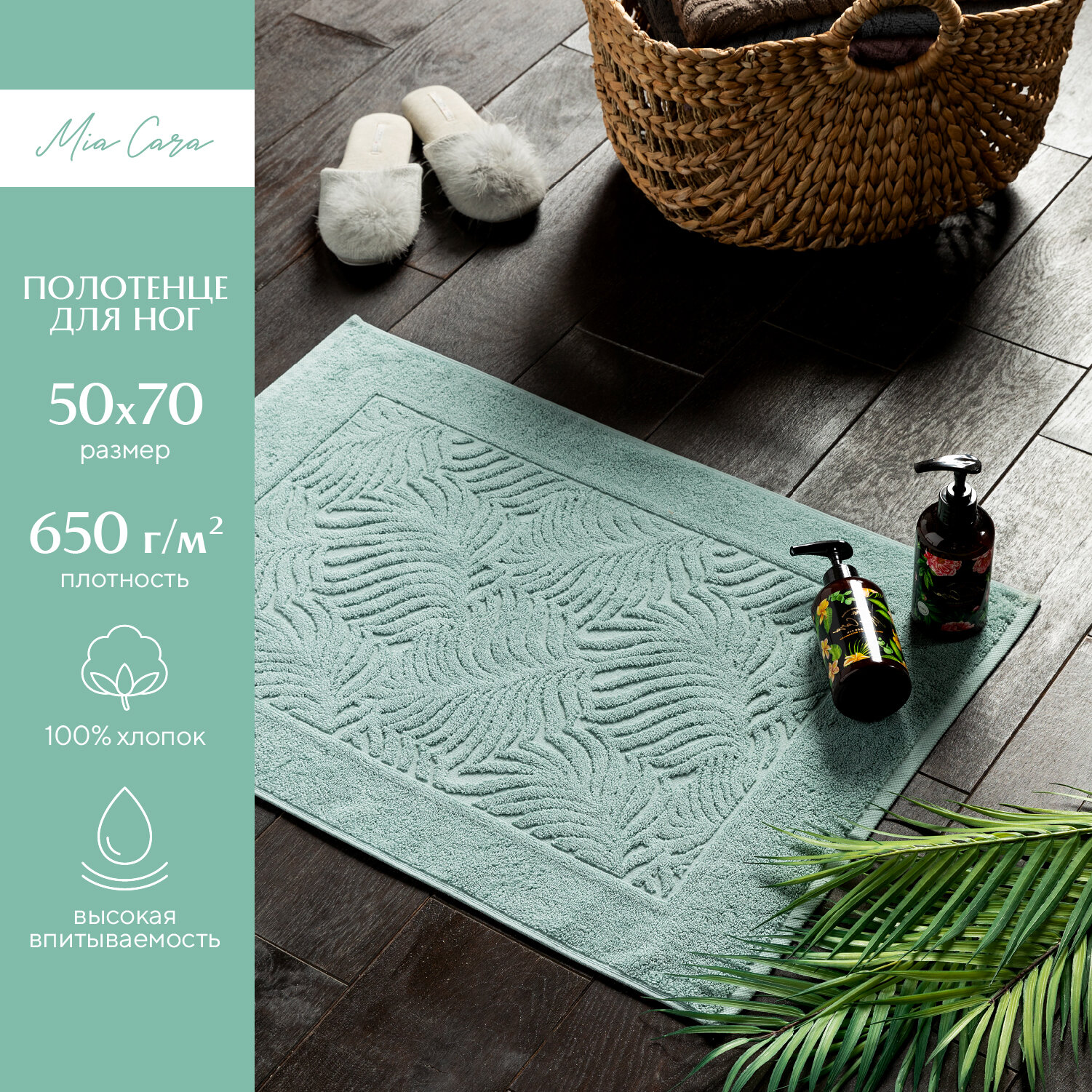 Отзывы на Полотенце махровое для ног 50х70 (коврик) "Mia Cara" Листья мятный