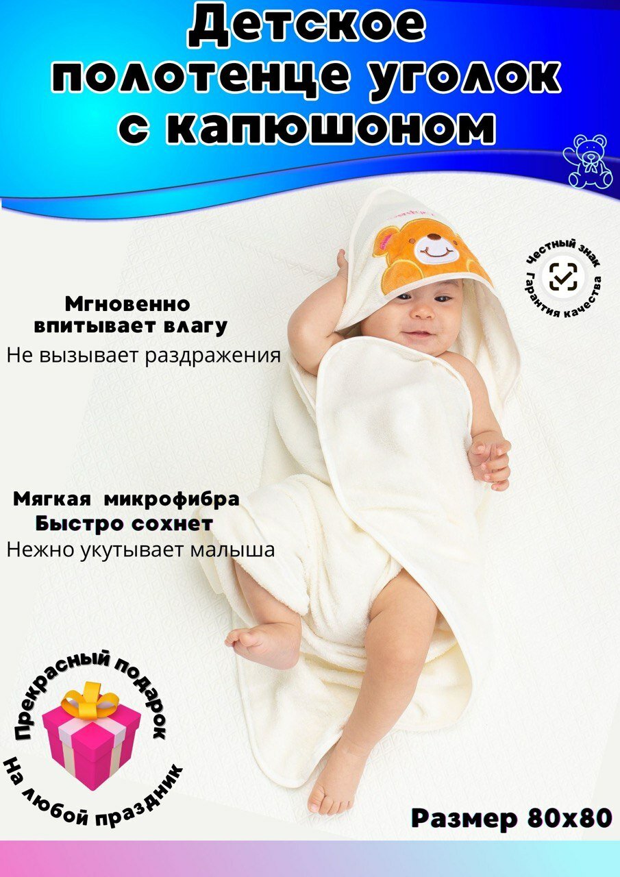 Полотенце-уголок Барни, микрофибра, 80x80 см, для новорожденных 519 ₽