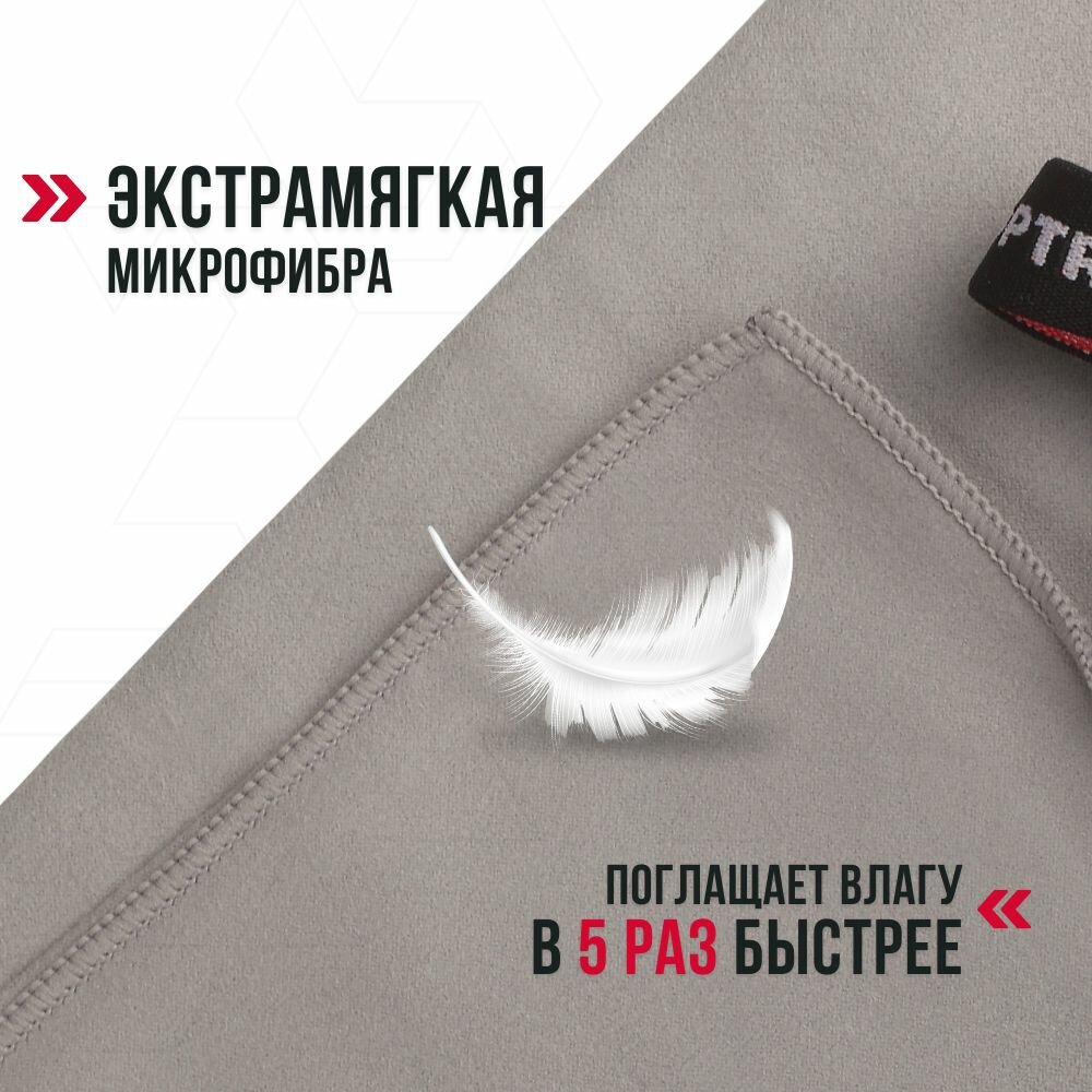 Полотенце спортивное из микрофибры TOPTRAIL, 80 х 130, светло-серое, для бассейна / пляжное / банное информация: