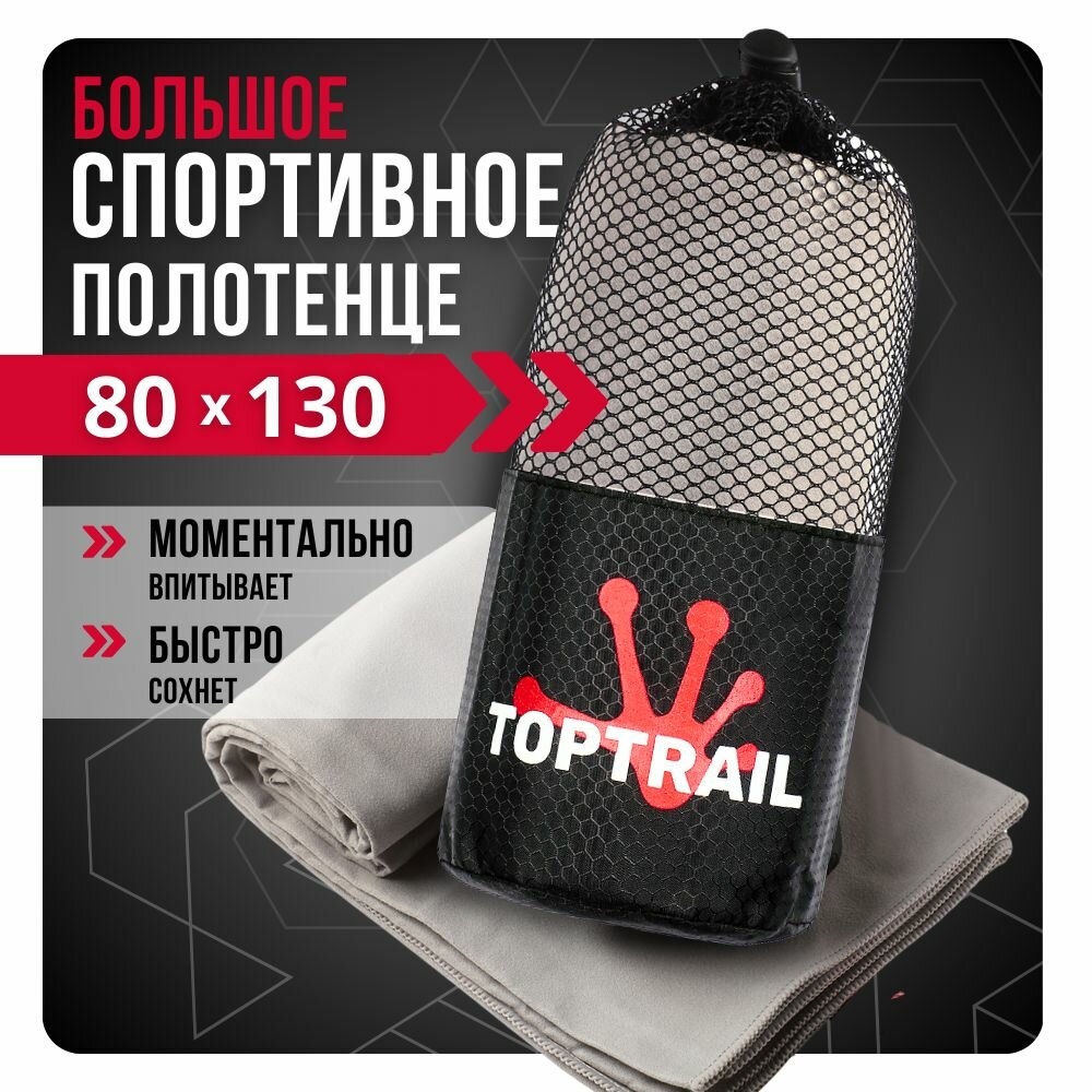 10 цен на Полотенце спортивное из микрофибры TOPTRAIL, 80 х 130, светло-серое, для бассейна / пляжное / банное