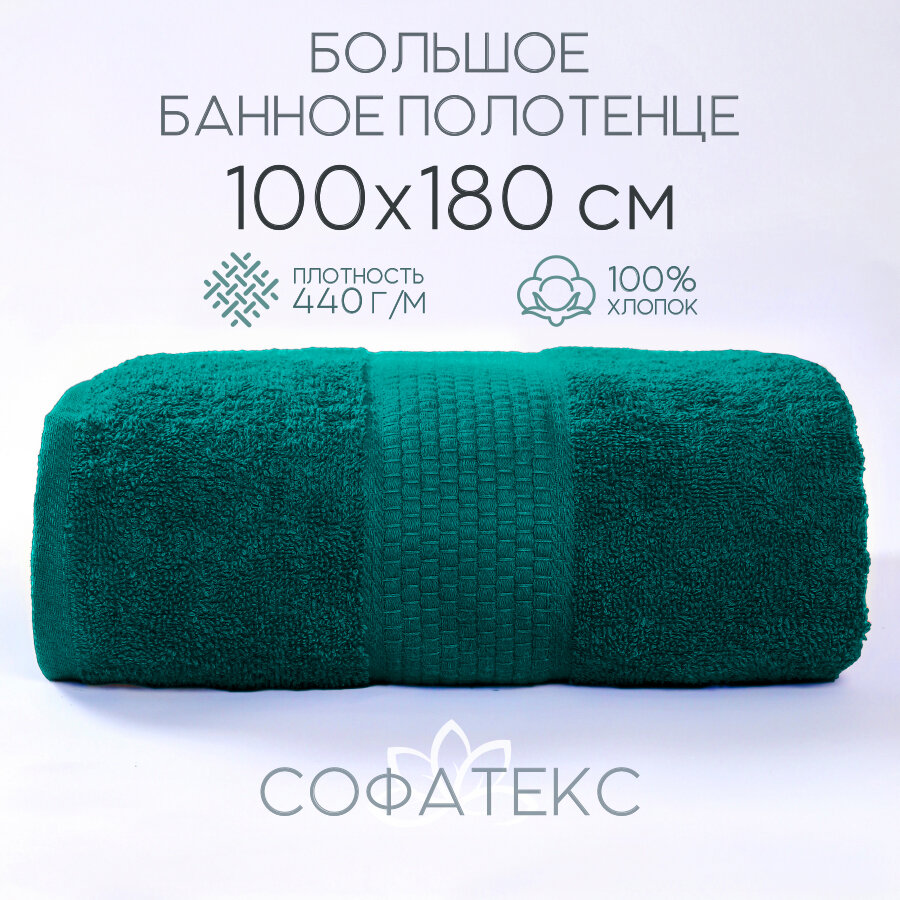 Полотенце банное махровое 100% хлопок Софатекс 100х180 для ванны и душа, цвет темно-зеленый информация: