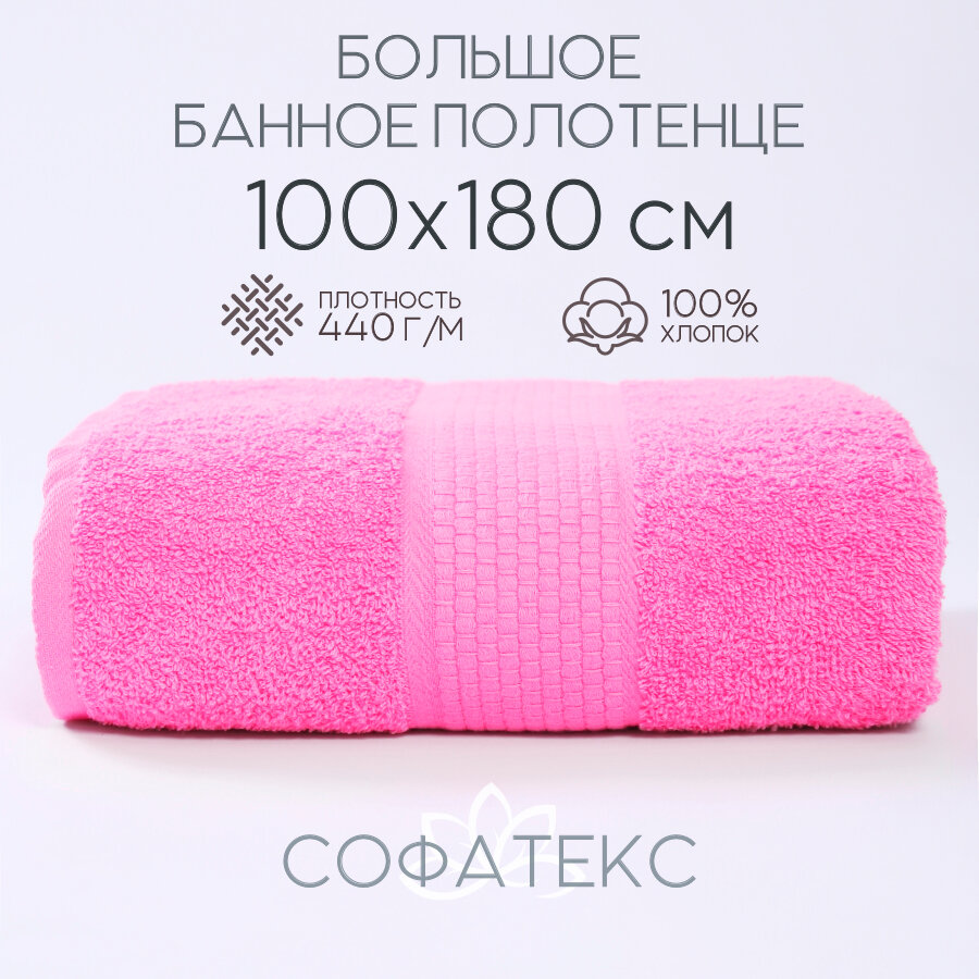Полотенце банное махровое 100% хлопок Софатекс 100х180 для ванны и душа, цвет розовый информация: