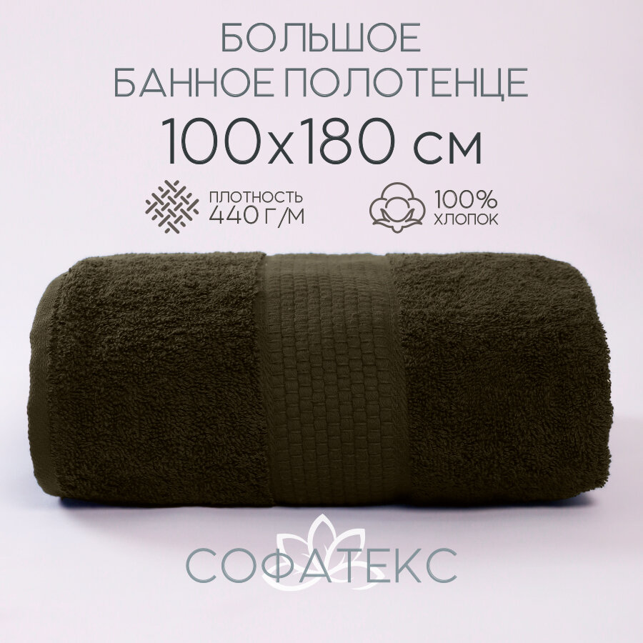 Полотенце банное махровое 100% хлопок Софатекс 100х180 для ванны и душа, цвет хаки информация: