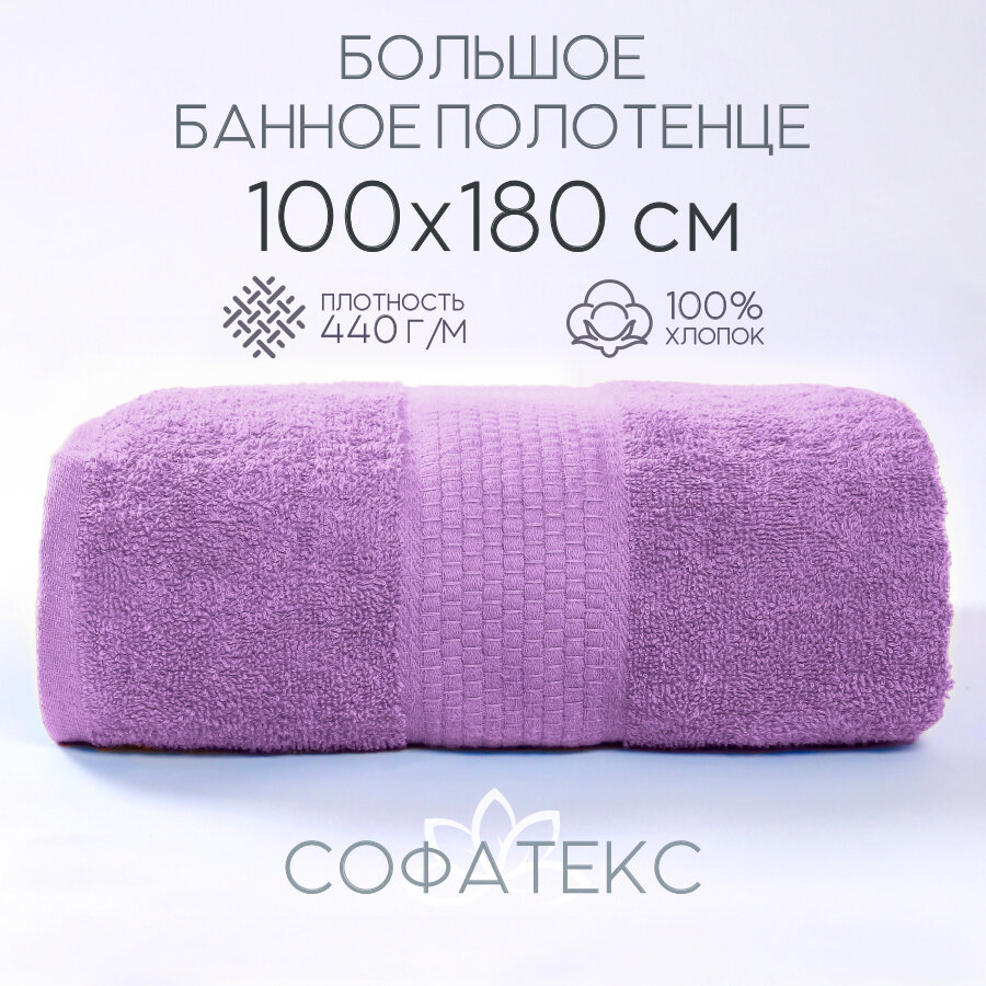 10 цен на Полотенце банное махровое 100% хлопок Софатекс 100х180 для ванны и душа, цвет сиреневый