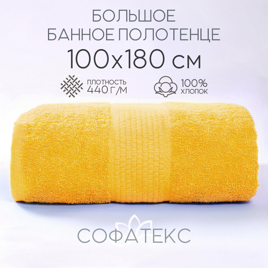 Полотенце банное махровое 100% хлопок Софатекс 100х180 для ванны и душа, цвет желтый информация: