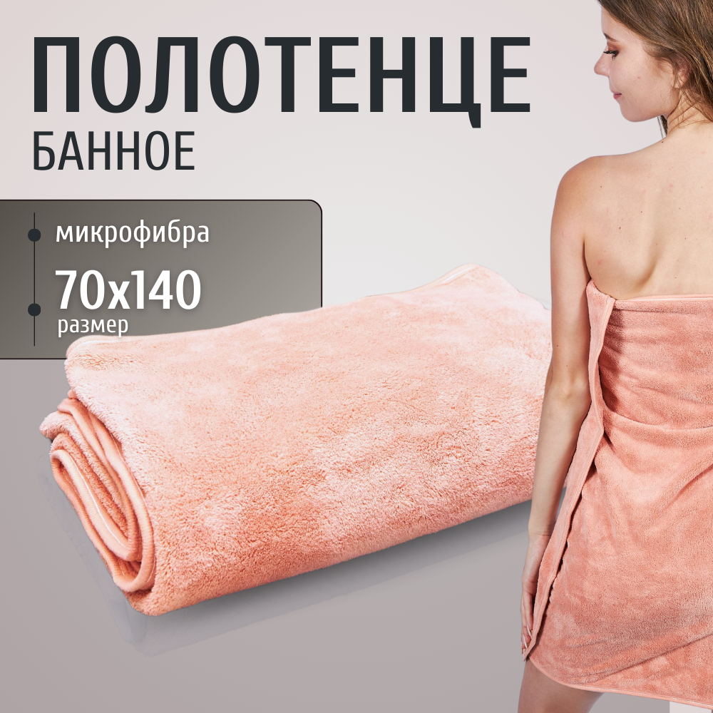 10 цен на Банное полотенце из микрофибры большое 70х140 персиковое
