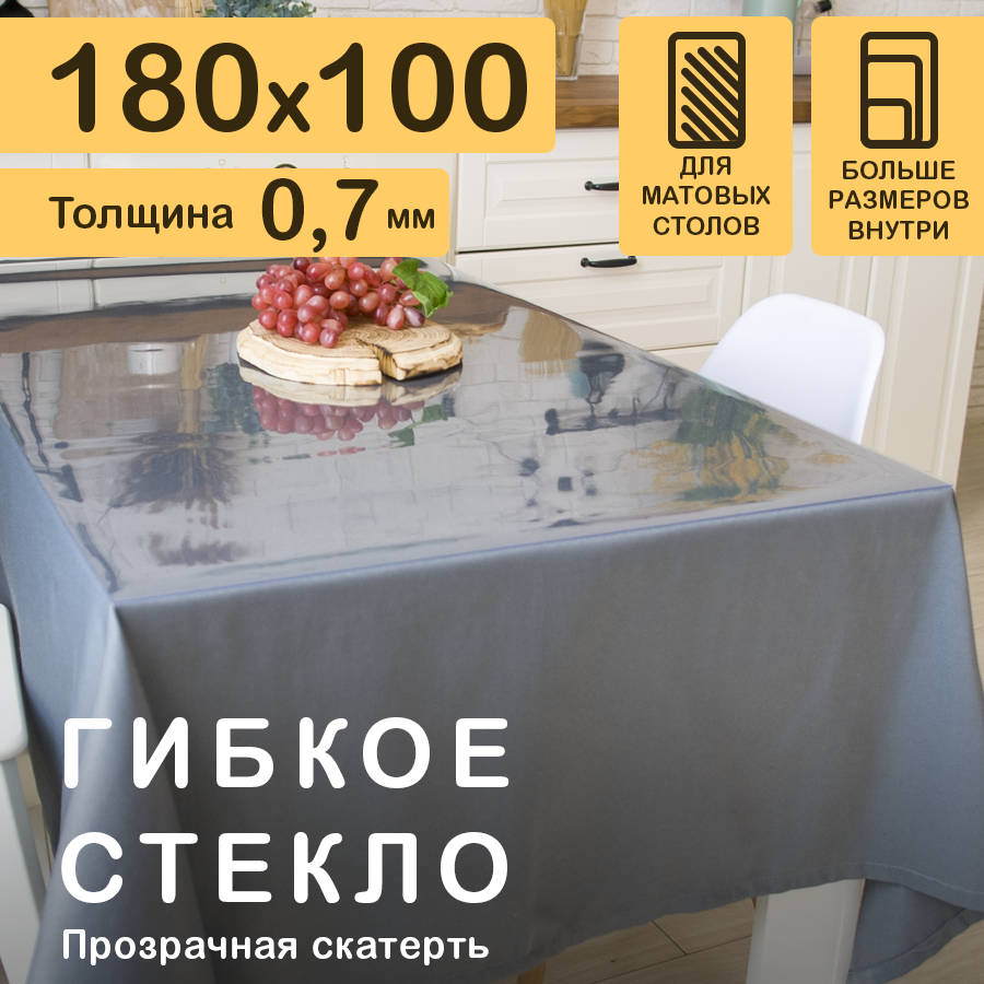 10 цен на Прозрачная скатерть на стол (гибкое/мягкое стекло) CrystalDesk. Толщина 0.7 мм. ПВХ скатерть. 100х180 см. Прозрачная.