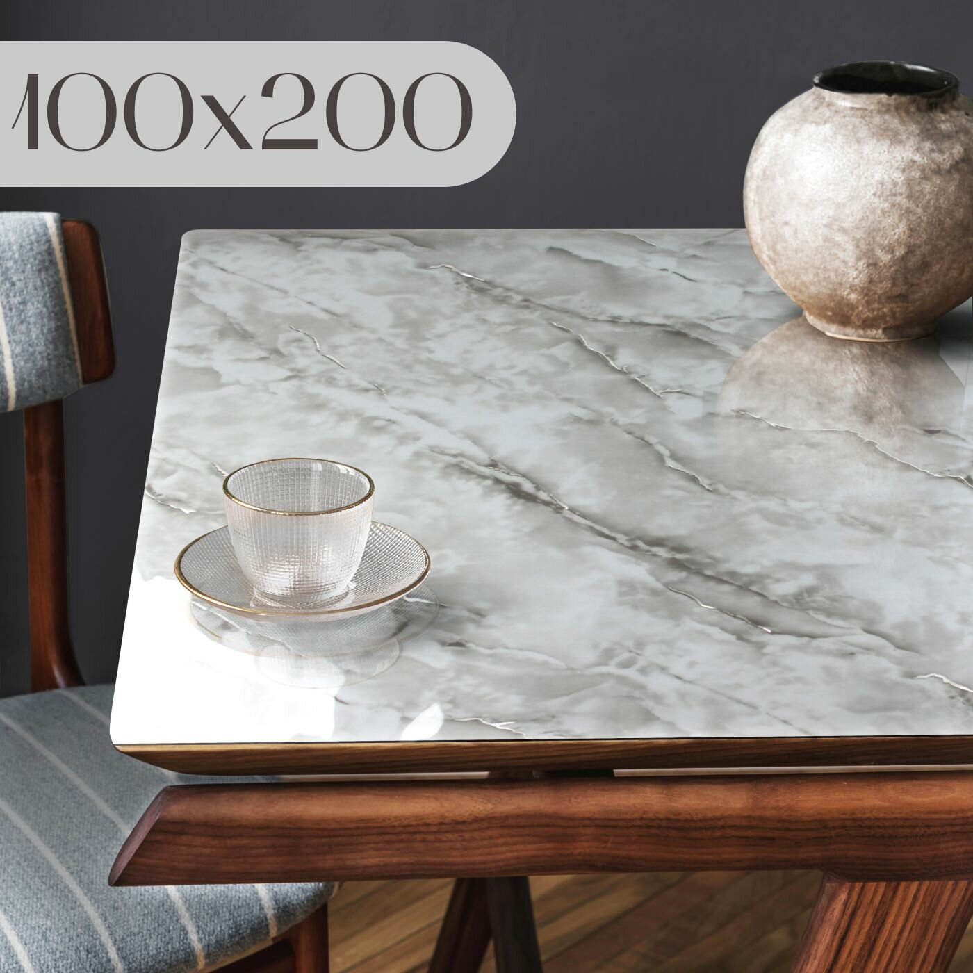 На стол покрытие Гибкое стекло "Серый Мрамор" 100x200см, 0.8мм информация: