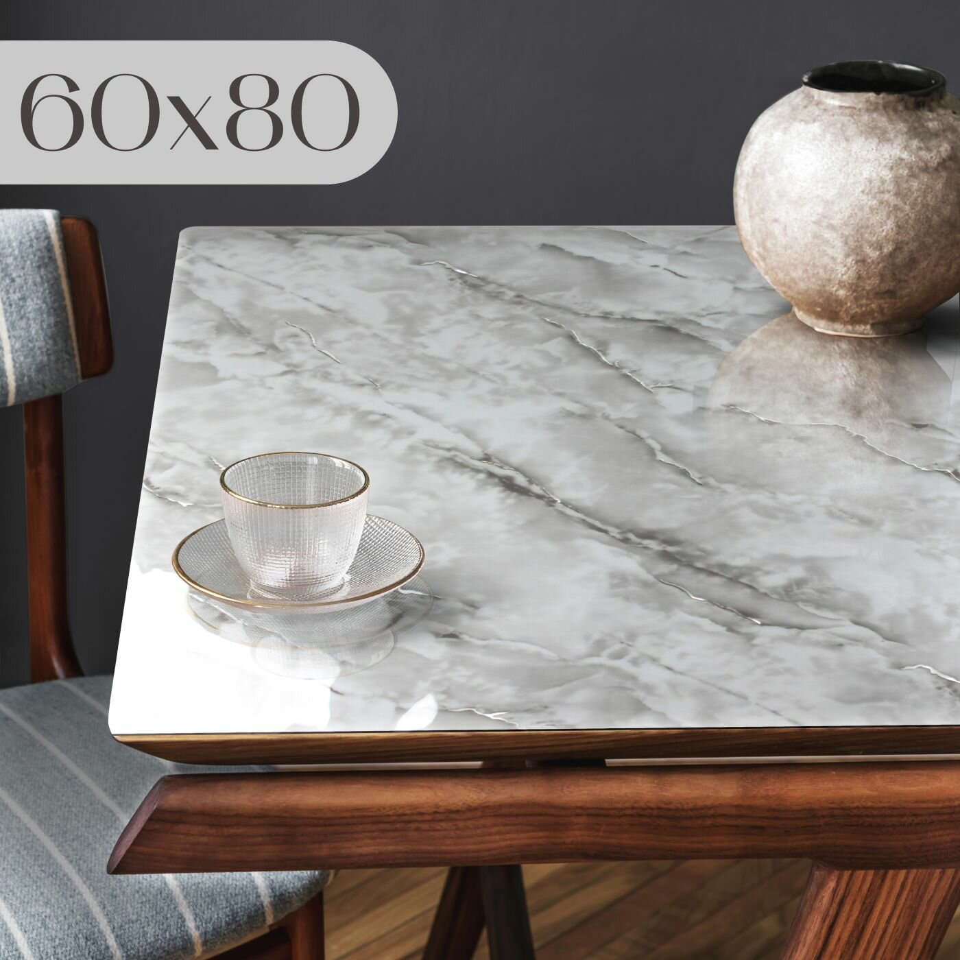 10 цен на На стол покрытие Гибкое стекло "Серый Мрамор" 60x80см, 0.8мм