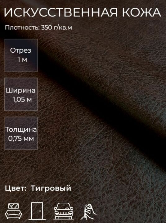 10 цен на Экокожа, искусственная кожа для рукоделия, мебели, двери, интерьера. Кожзам Отрез 1м, Ширина 1,05м, Плотность: 350 г/кв.м. Цвет: Тигровый
