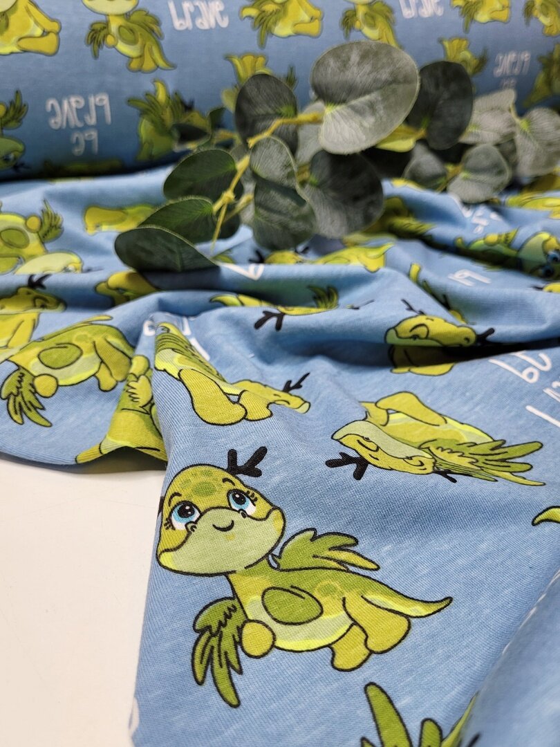 Отзывы на Ткань кулирная гладь 100*180см «Зеленые динозаврики на голубом»