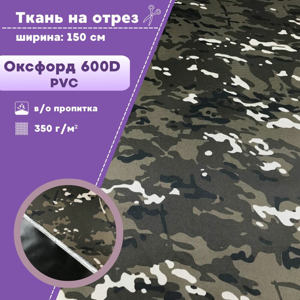 ткань Оксфорд 600D PVC, МК КМФ , пропитка водоотталкивающая, ш-150 см, на отрез, цена за пог. метр информация: