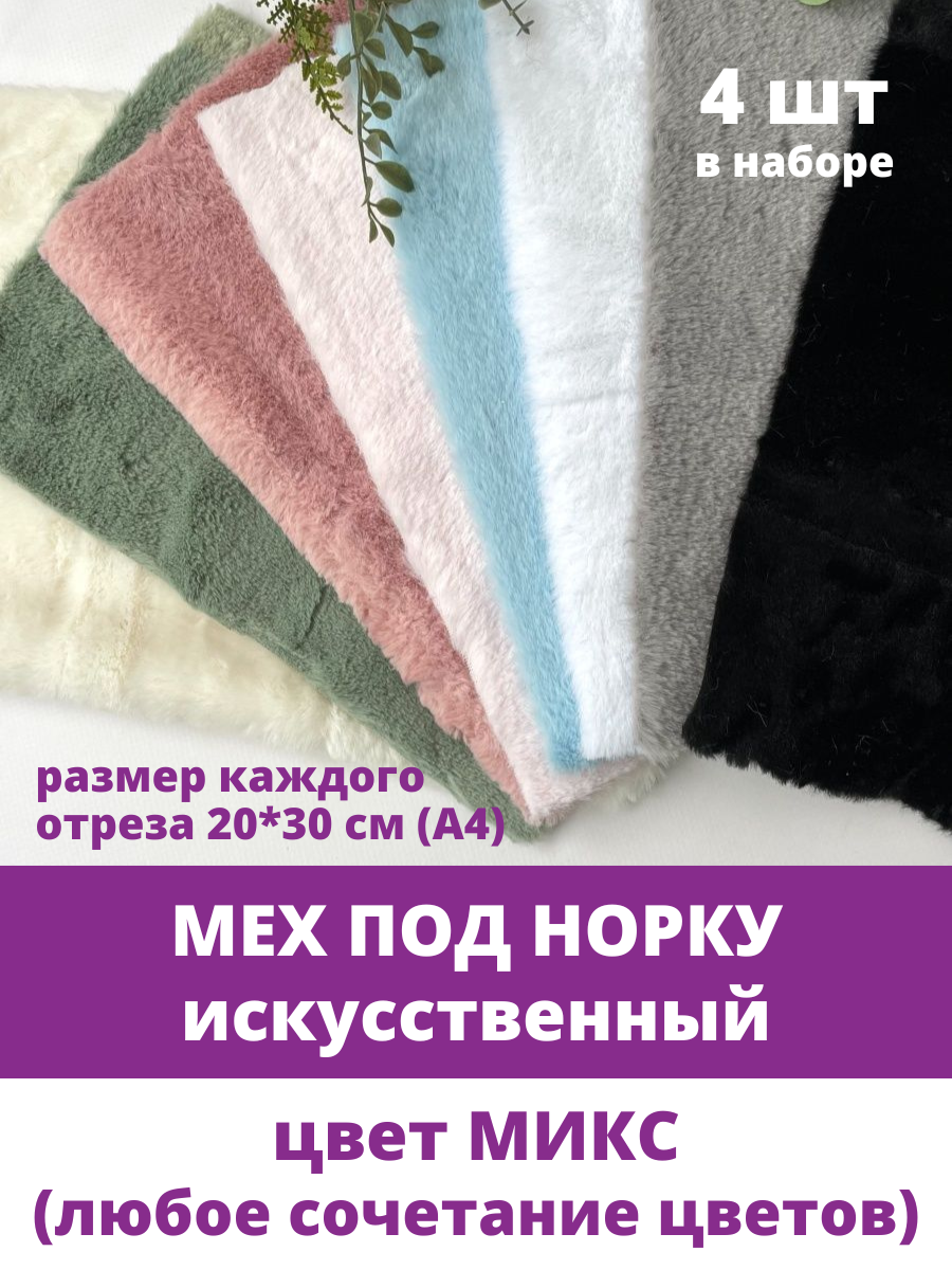 Отзывы на Мех под норку, мягкий, искусственный, Набор микс 4 цвета, размер отрезов 20*30 см