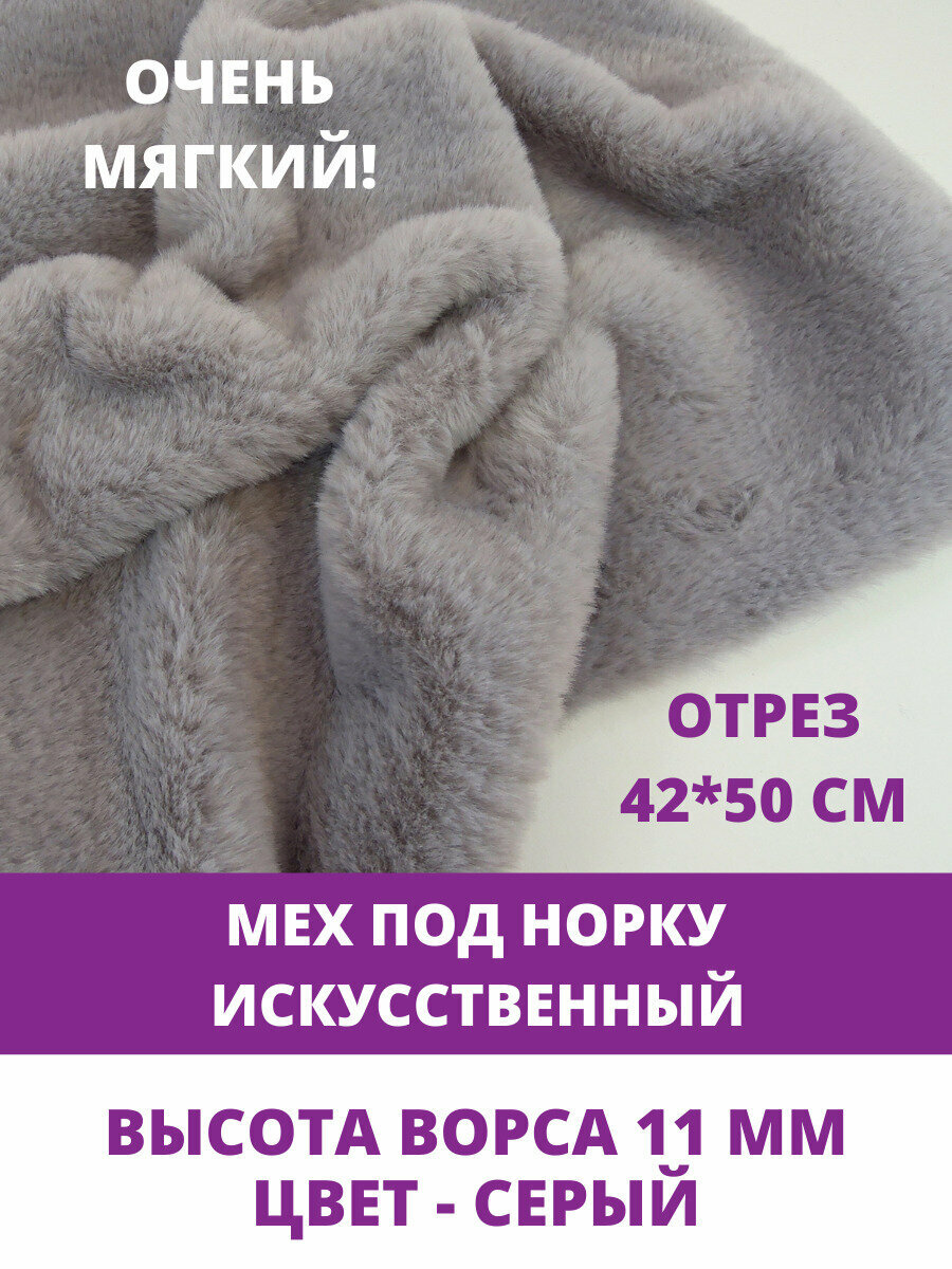 10 цен на Мех под норку, мягкий, искусственный, для рукоделия, ворс 11 мм, отрез 42х50 см, серый