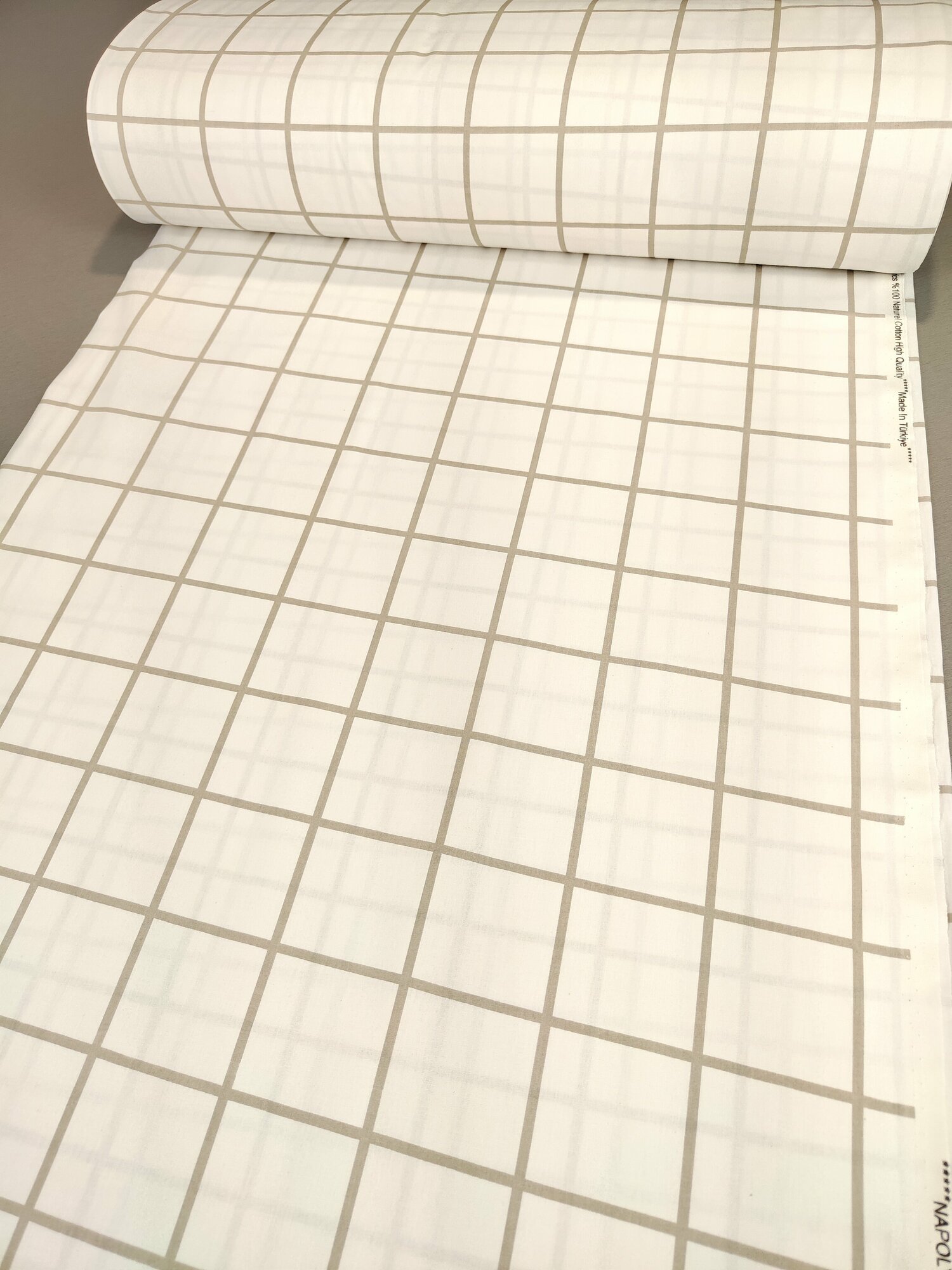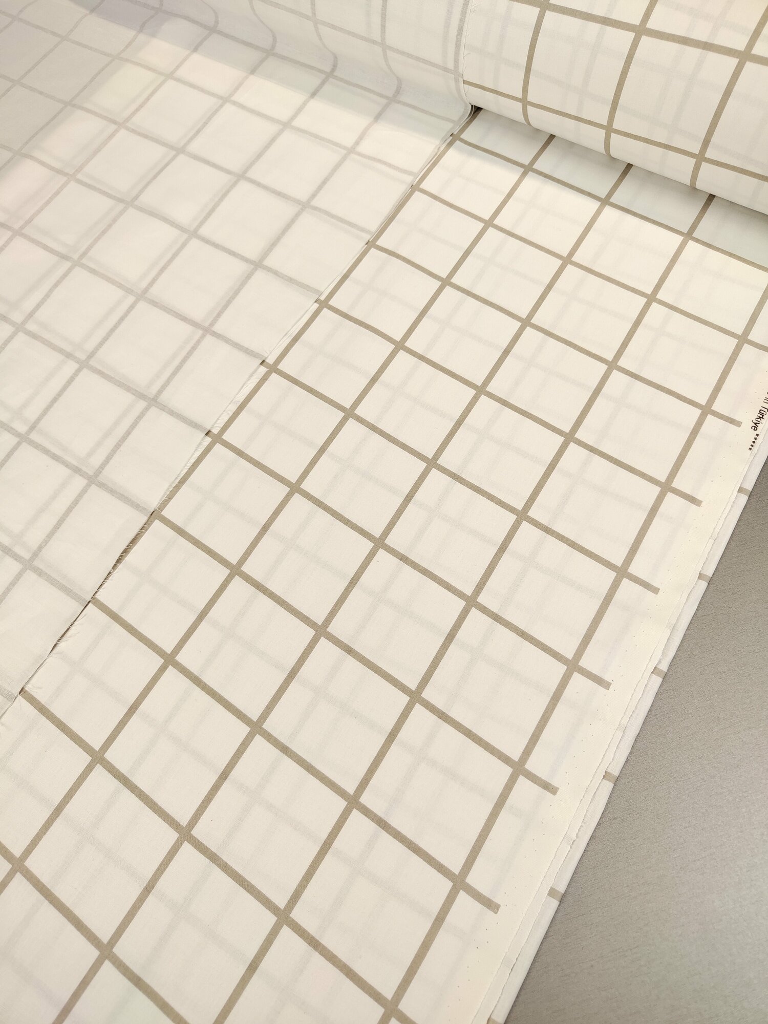 10 цен на Ранфорс люкс (поплин Турция) ткань для пошива постельного белья , принт клетка крупная молочная, метражом на отрез от 1 метра