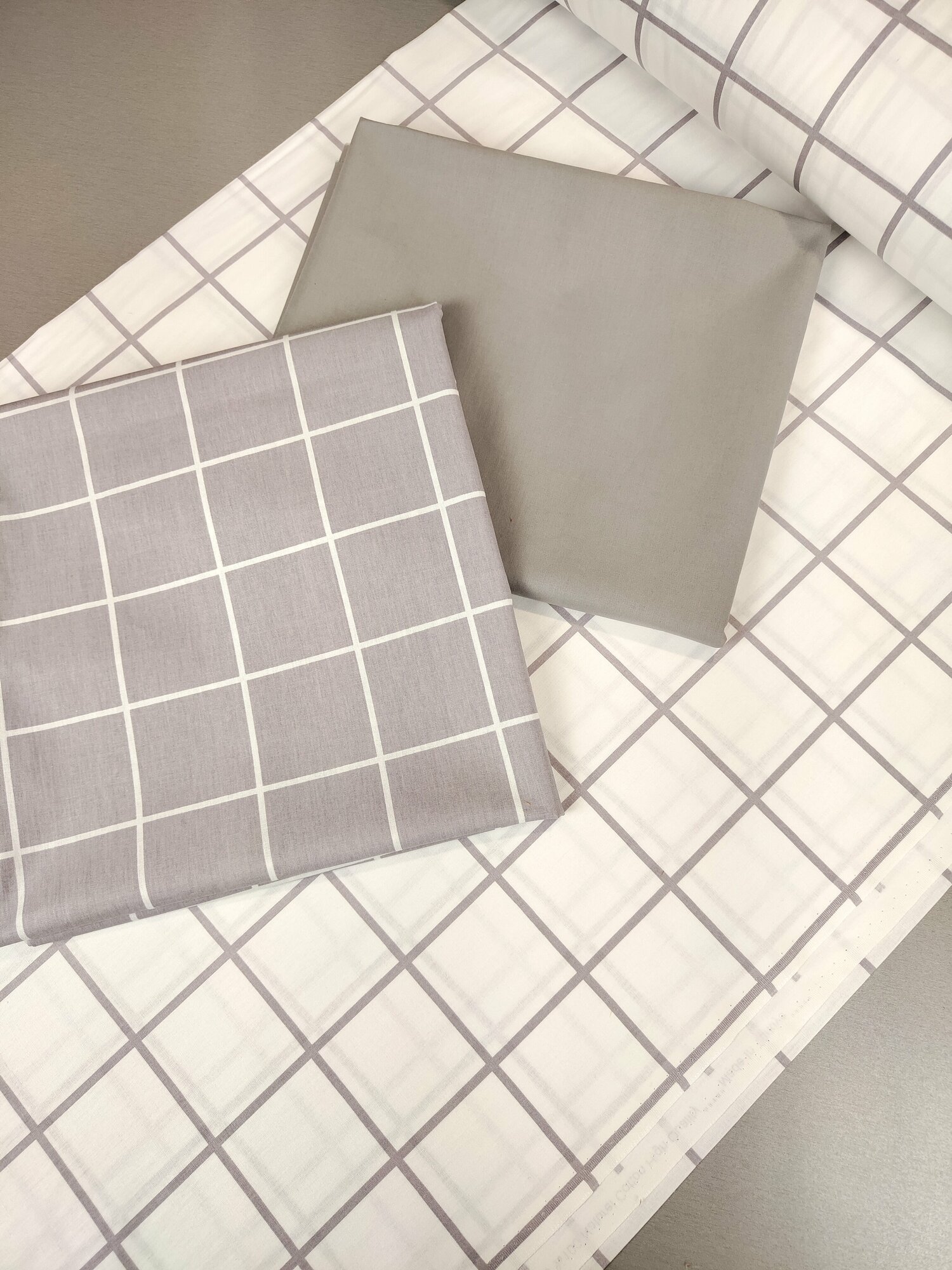 Ранфорс люкс (поплин Турция) ткань для пошива постельного белья , принт клетка крупная серая, метражом на отрез от 1 метра 770 ₽