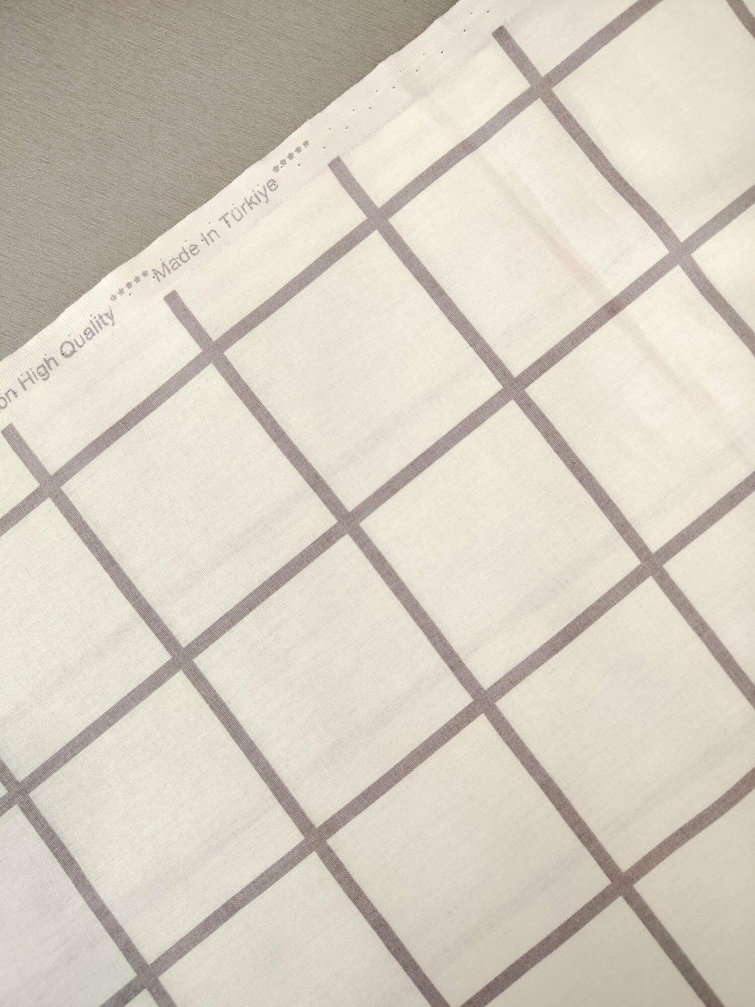10 цен на Ранфорс люкс (поплин Турция) ткань для пошива постельного белья , принт клетка крупная белая, метражом на отрез от 1 метра